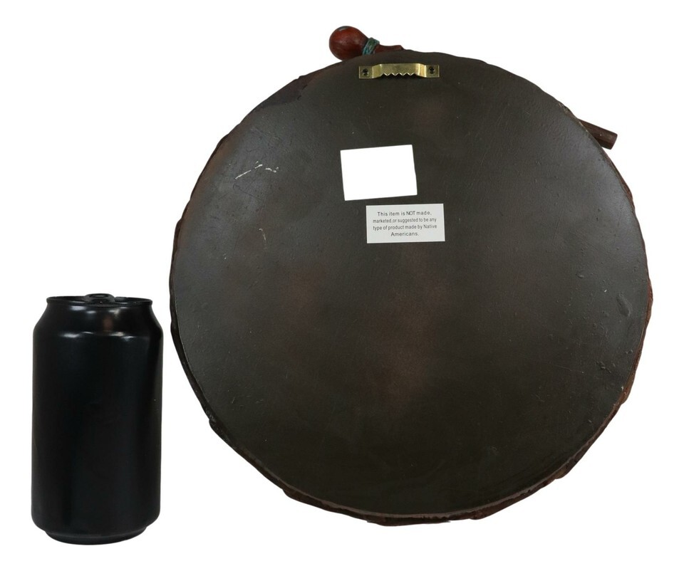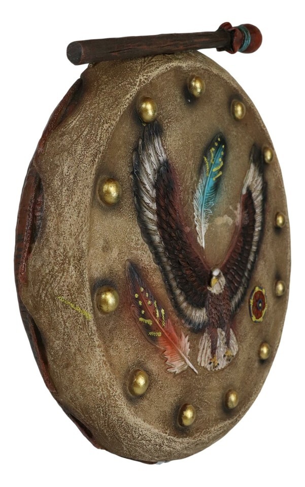 Indian Soaring Eagle and Feathers Warpath Drum And Stick Wall Plaque Figurine