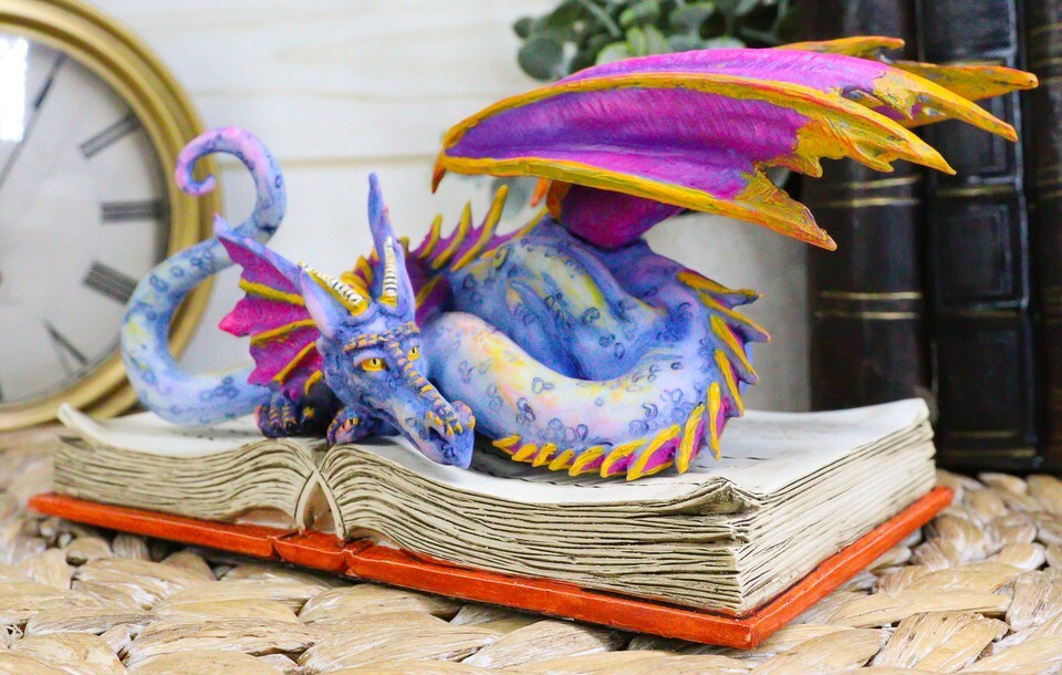 Ebros Amy Brown Fantasy Rainbow Book Wyrm Dragon Of Bibliography Figurine Decor Statue