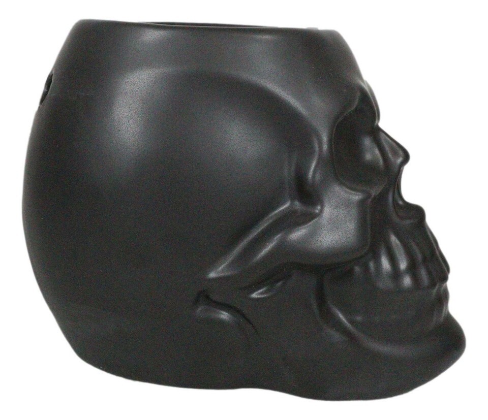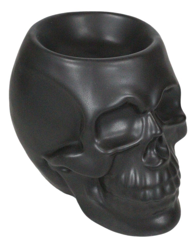 Matte Black Gothic Skull Skeleton Ceramic Votive Candle Essential Oil Warmer
