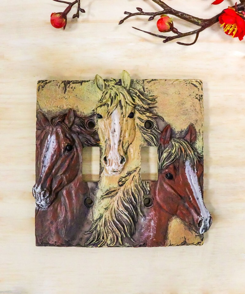 ? It is now very easy to transform your space at your home or office into a rustic Western exotic getaway with these friendship horses electrical cover plates. Three best friends stand by each other to form the main frame of the wall plates. A palomino horse, a dark mahogany steed and a chestnut stallion are the main centerpiece focus of this artwork.