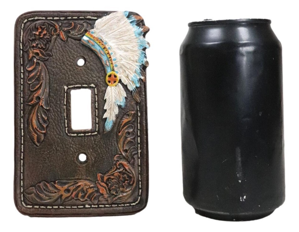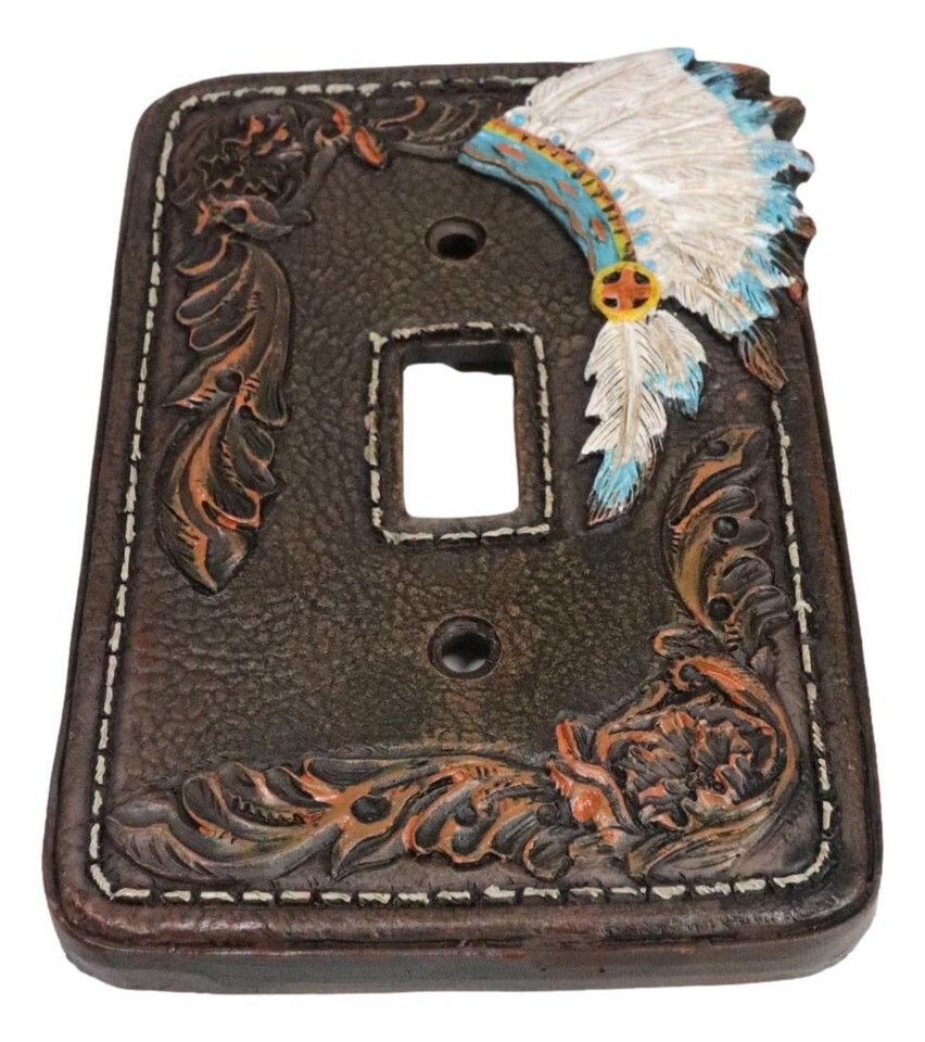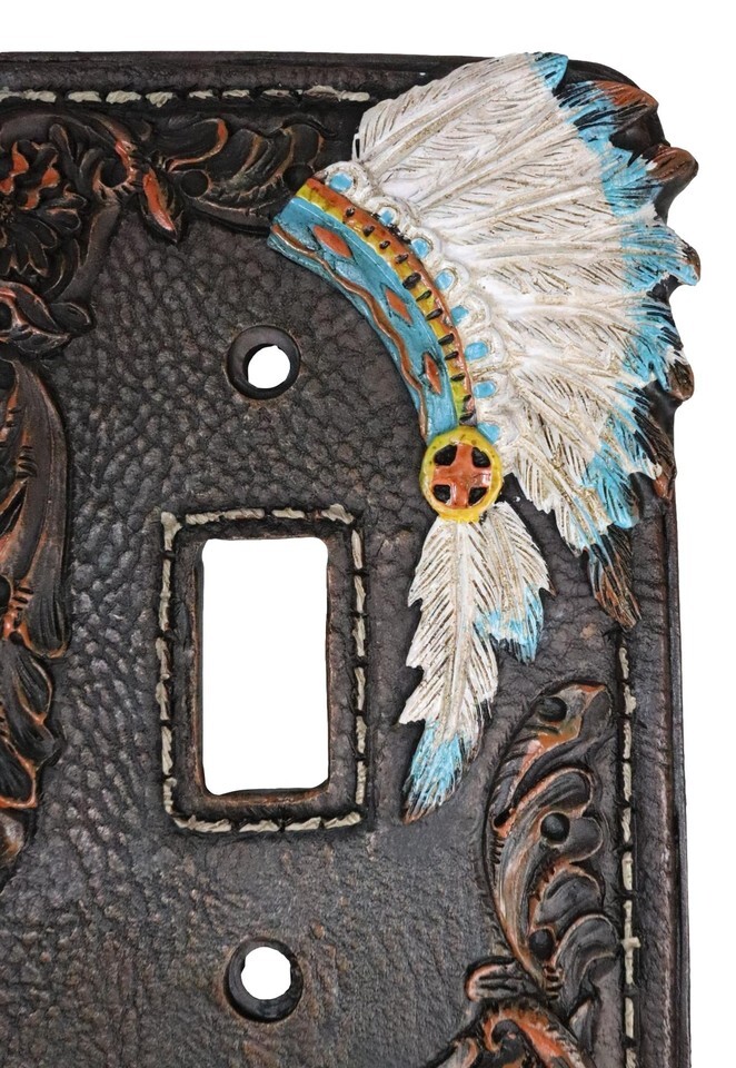 Set of 2 Faux Leather Tribal Indian Chief Headdress Single Toggle Switch Plates