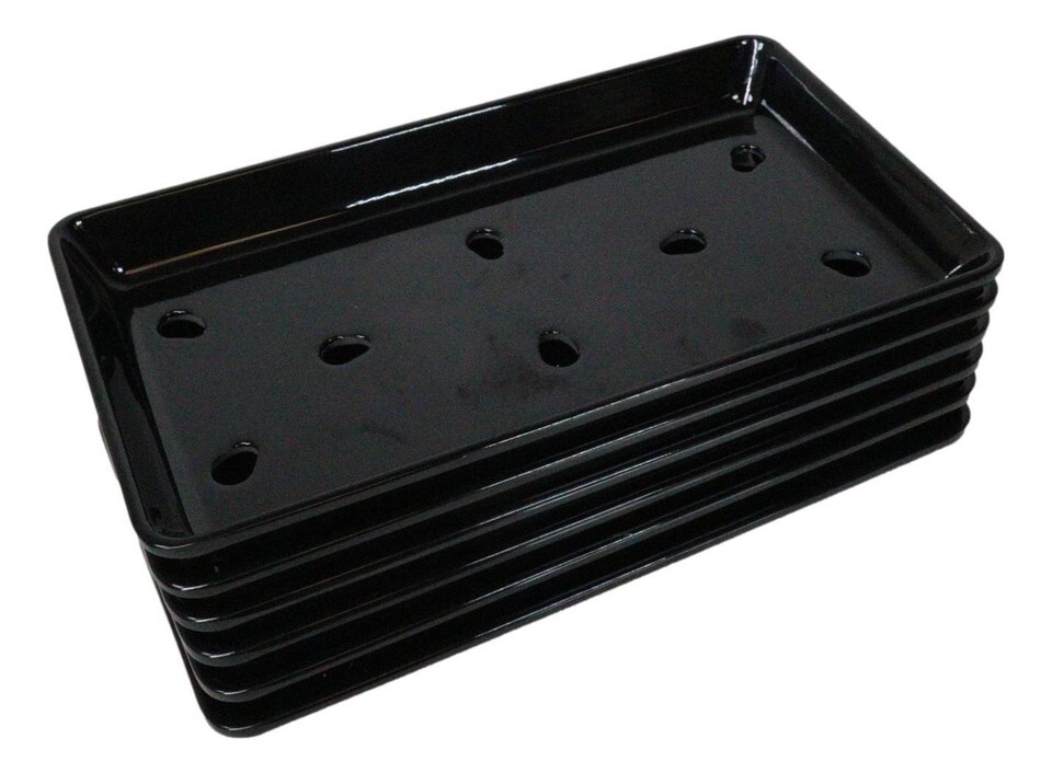 Pack Of 6 Black Neta Zara Sushi Case Sashimi Plates With Drip Holes 8.5" By 5"