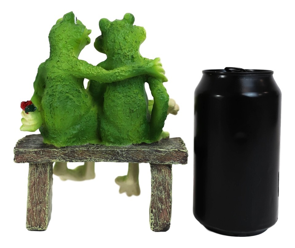 Rainforest Romantic Frog Couple Lovers Sitting On Park Bench Decor Figurine 7"H