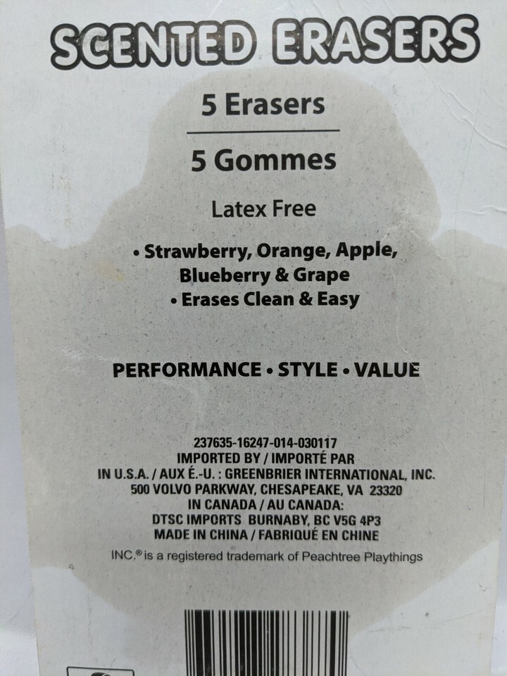 Inc Fruit Scented Erasers Pack Of Five. Combined Shipping (for USA Customers Only)