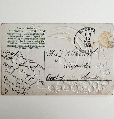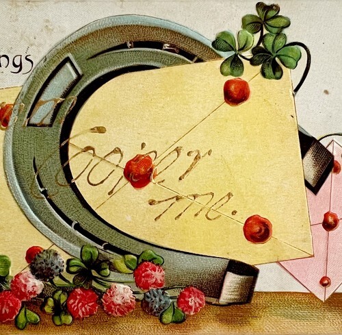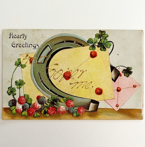 Hearty Greetings Horseshoe Clover Victorian Card Postcard 1900s PCBG11B
