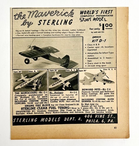 1949 Aviation Maverick Sterling Model Airplane Advertisement Philadelphia