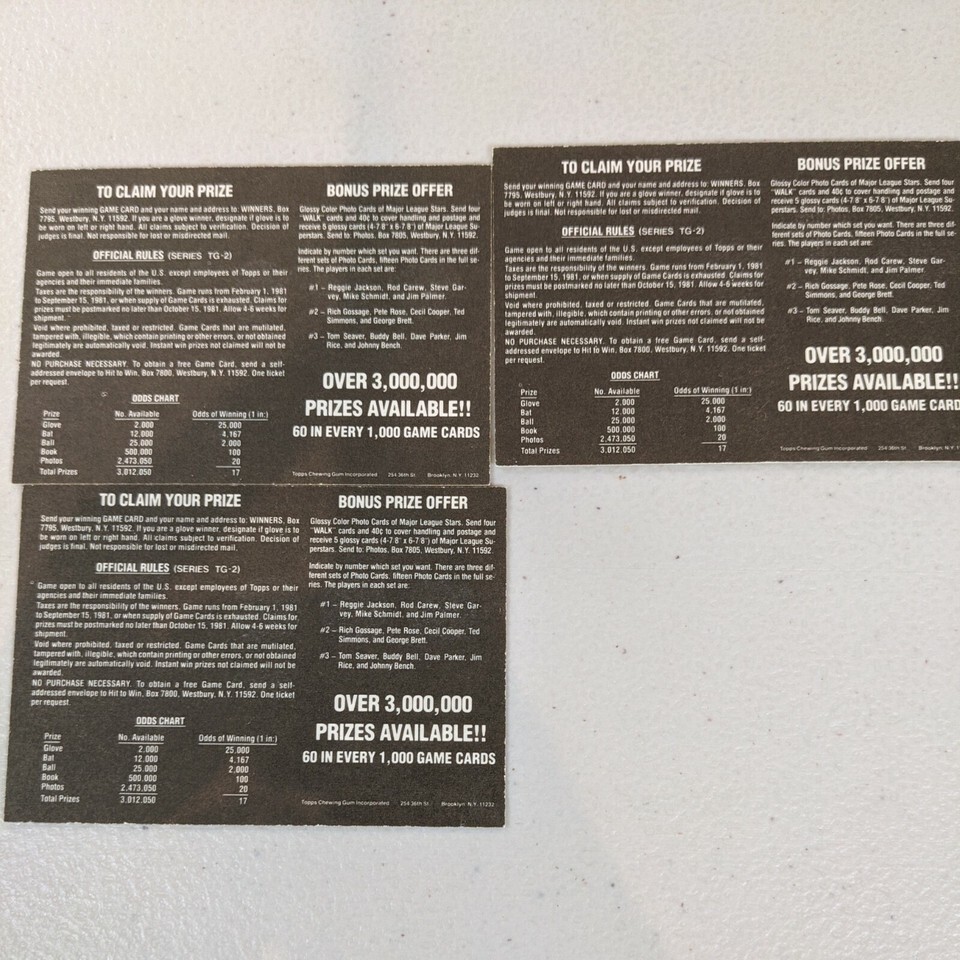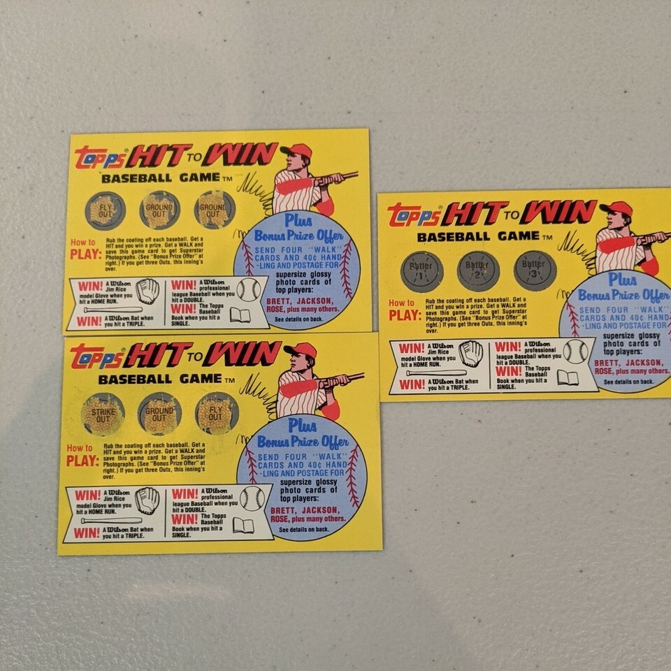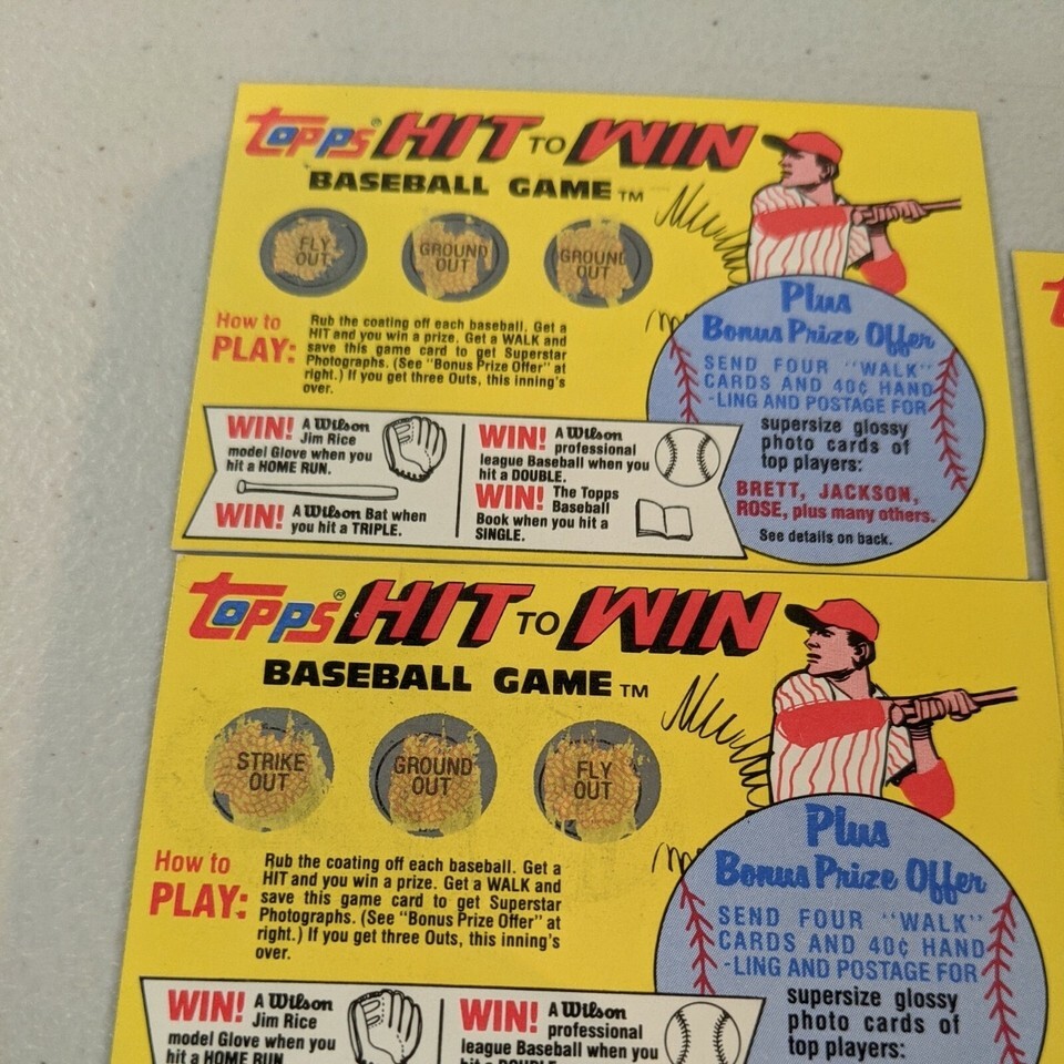 1981 TOPPS HIT TO WIN Baseball Game INSERT CARDS 2 Scratch/1 Unscratched