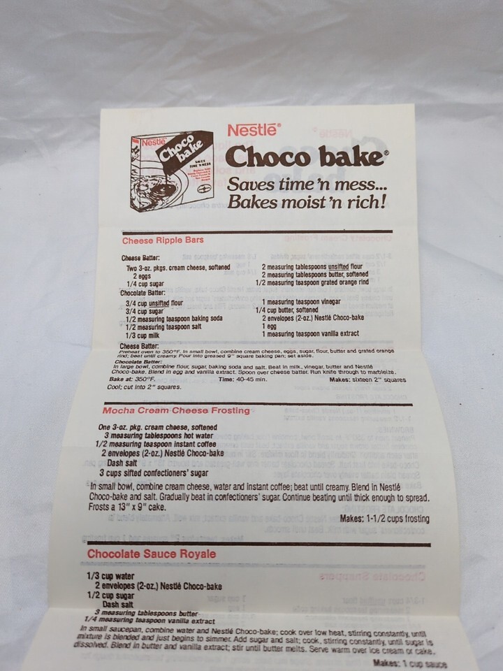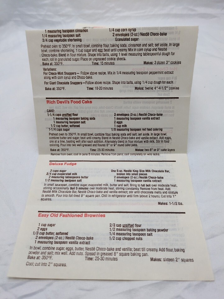 Vintage Nestle Choco Bake Recipes