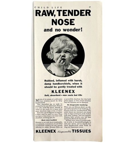 Kleenex Dispoable Tissues 1933 Advertisement Children Raw Tender Nose DWKK12