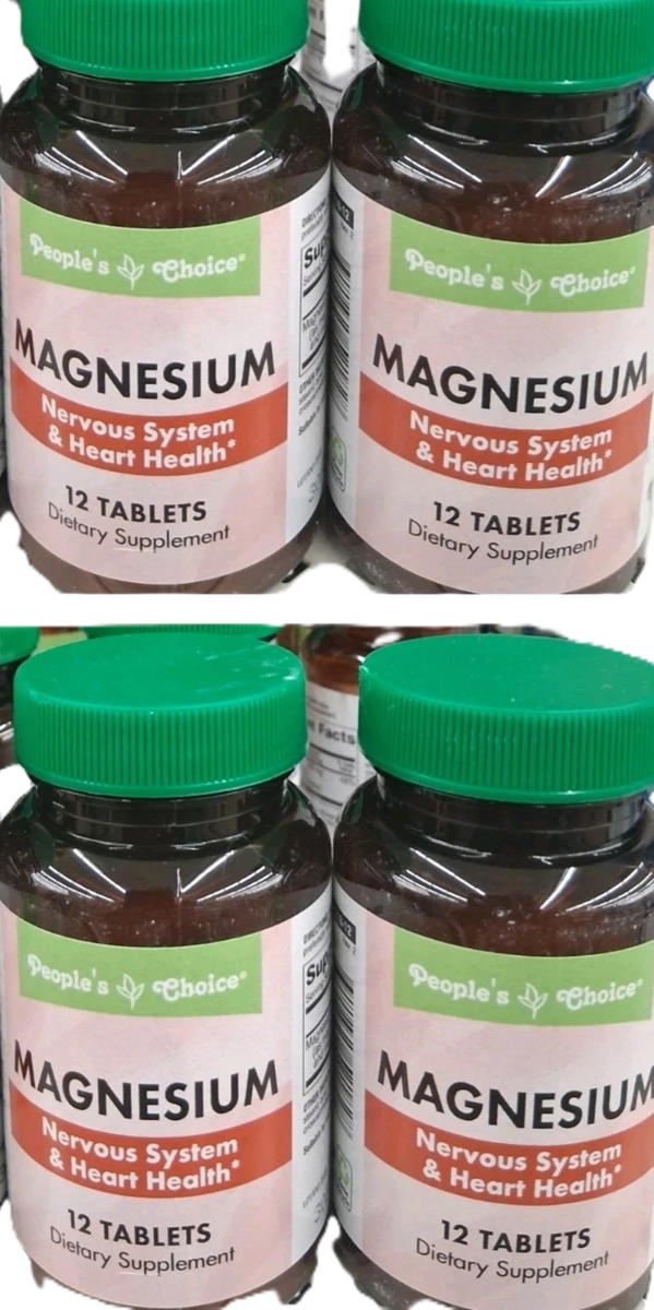 4 Bottles People's choice Magnesium Nervous System Heart Health 12 Tablets/Box