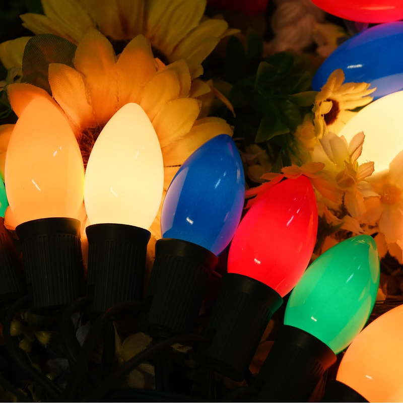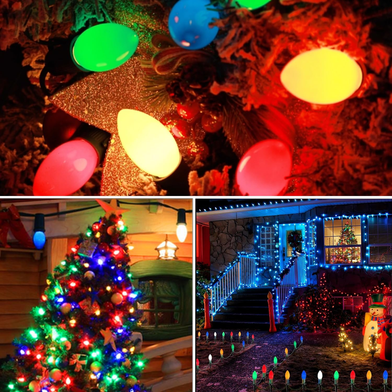 C9 Vintage Christmas Lights Outdoor Multicolor Christmas Tree Lights, 25FT Retro