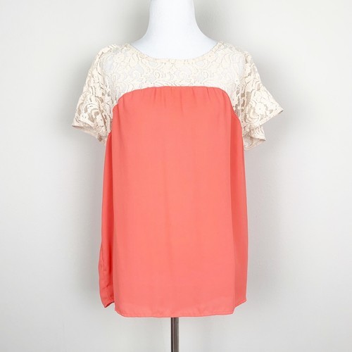 Anthropologie Maeve Top with Lace Detail Size Small Orange/Coral And Cream