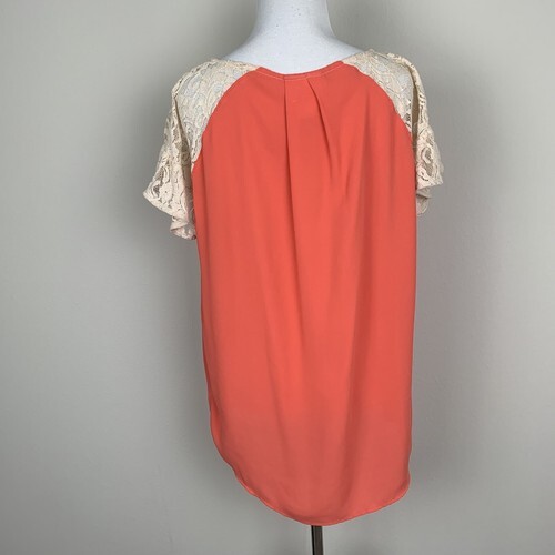 Anthropologie Maeve Top with Lace Detail Size Small Orange/Coral And Cream.
