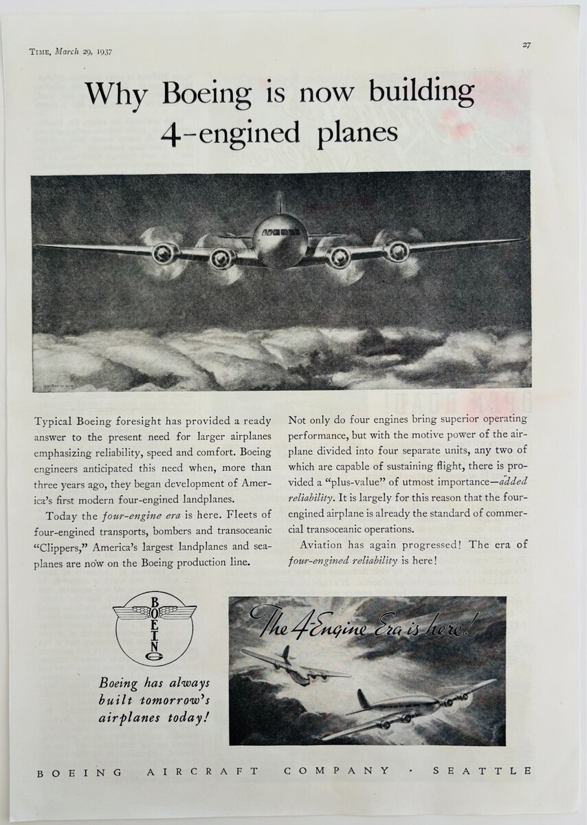 1937 Boeing Aircraft 4 Engine Advertisement and 28 similar items
