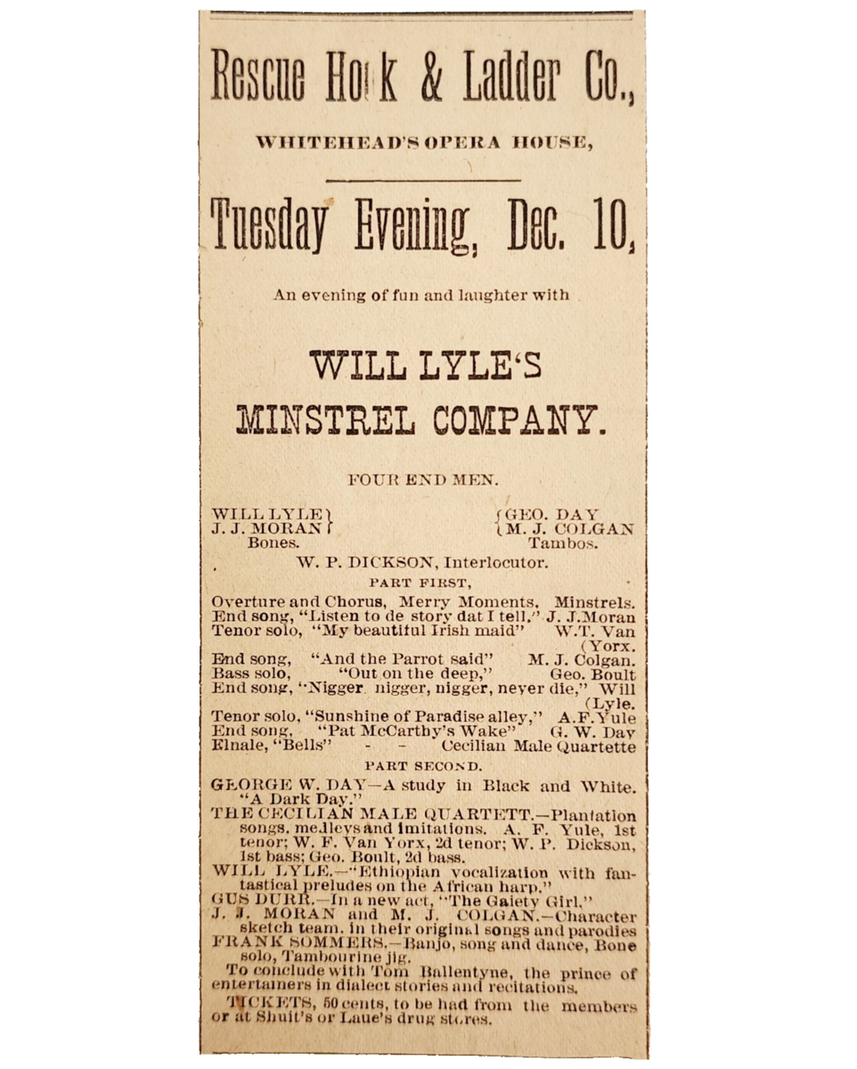 1895 Rescue Hook & Ladder Fire Advertisement Opera House Meeting Victorian C82C