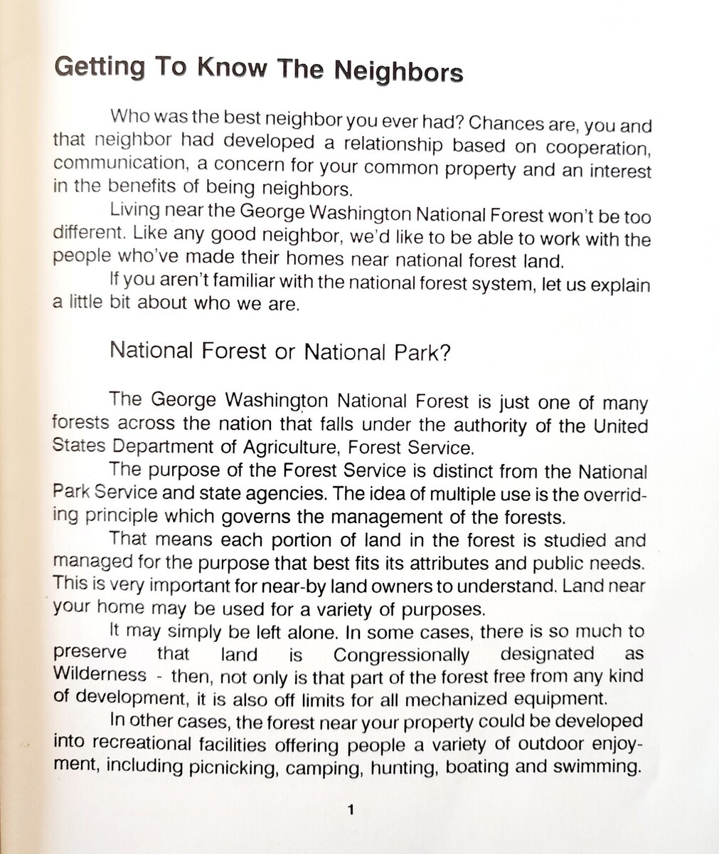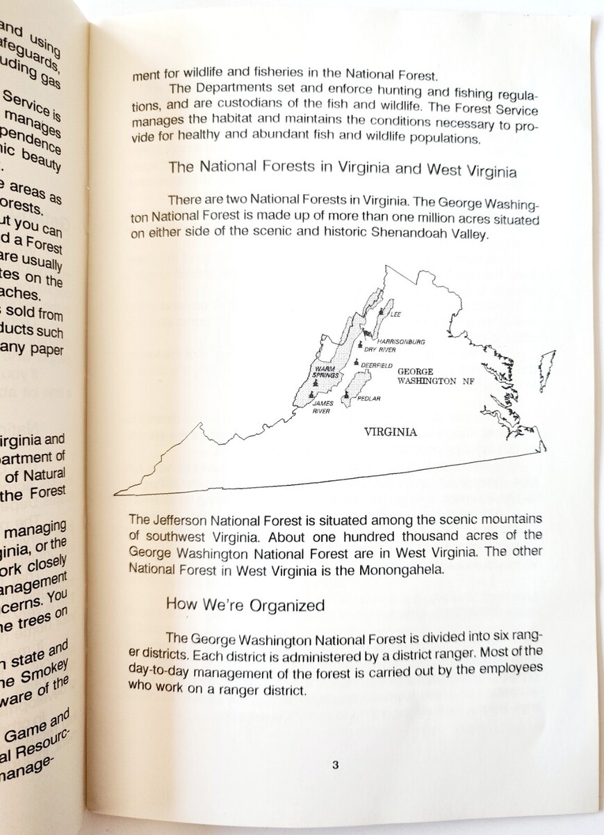 1994 George Washington National Forest Booklet USDA Vintage Introduction C80