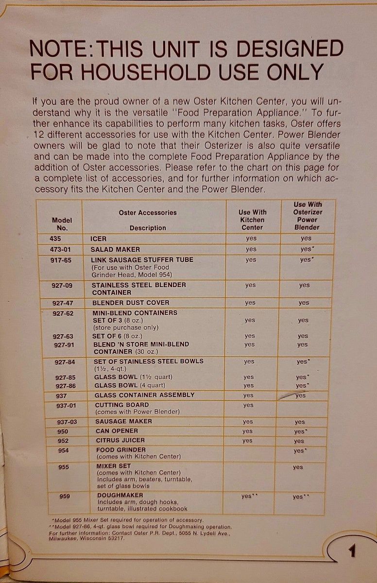 Oster Kitchen Center manual. Really great condition. Tons of recipes, maintenance and how to plus much more.