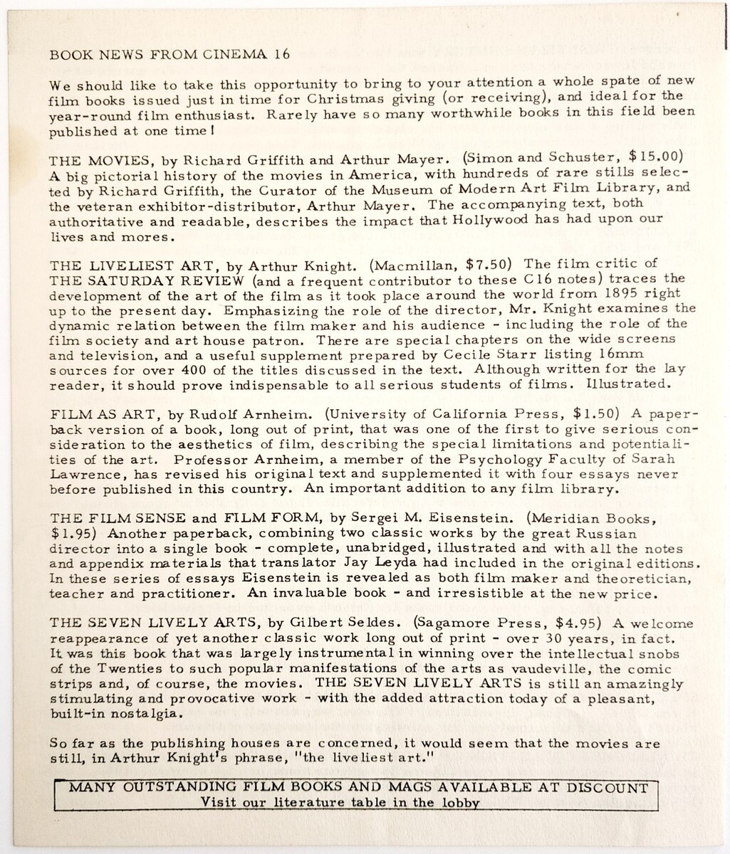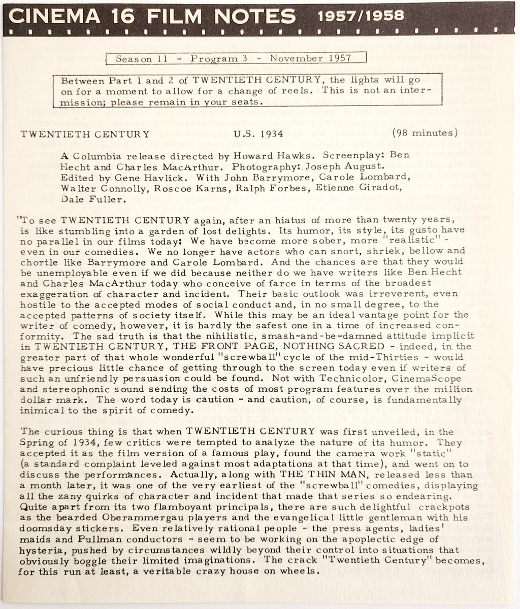 1957 Cinema 16 Film Notes Twentieth Century and 34 similar items