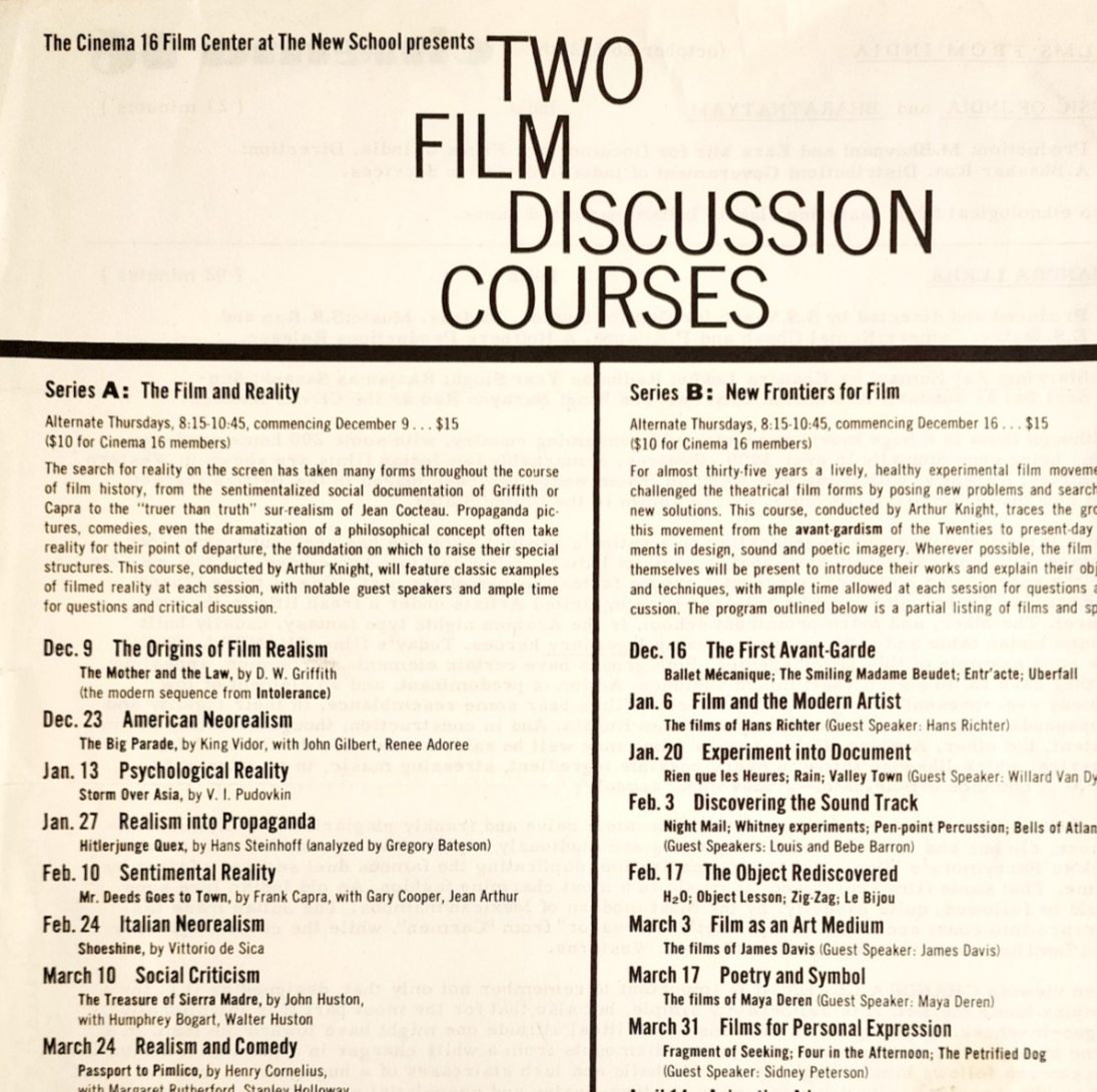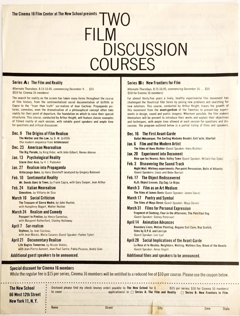 1957 Cinema 16 Film Discussion Course Sign Up Form Original New School NYC C99