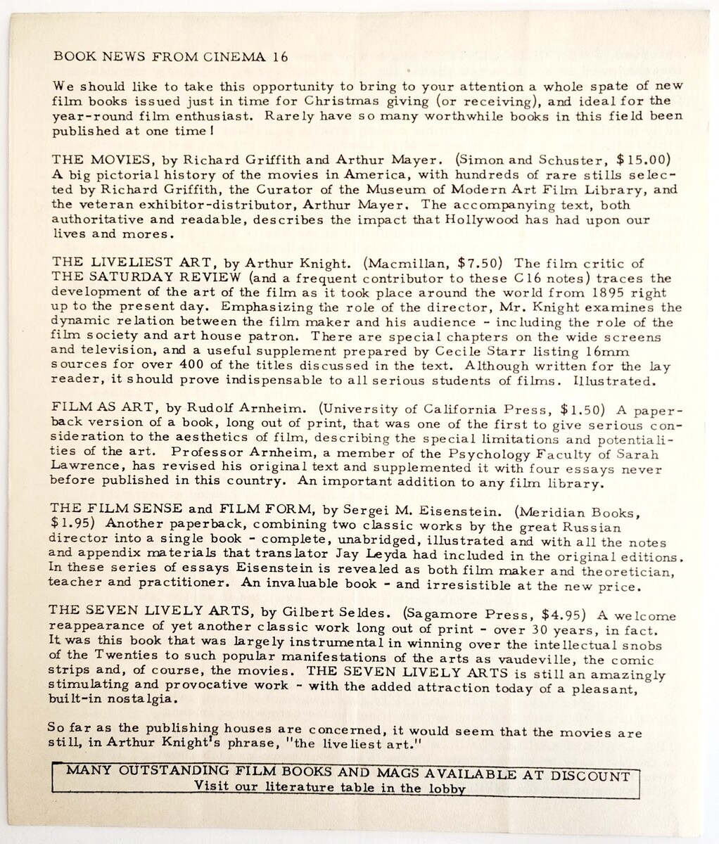 1957 Cinema 16 Film Notes Twentieth Century and similar items