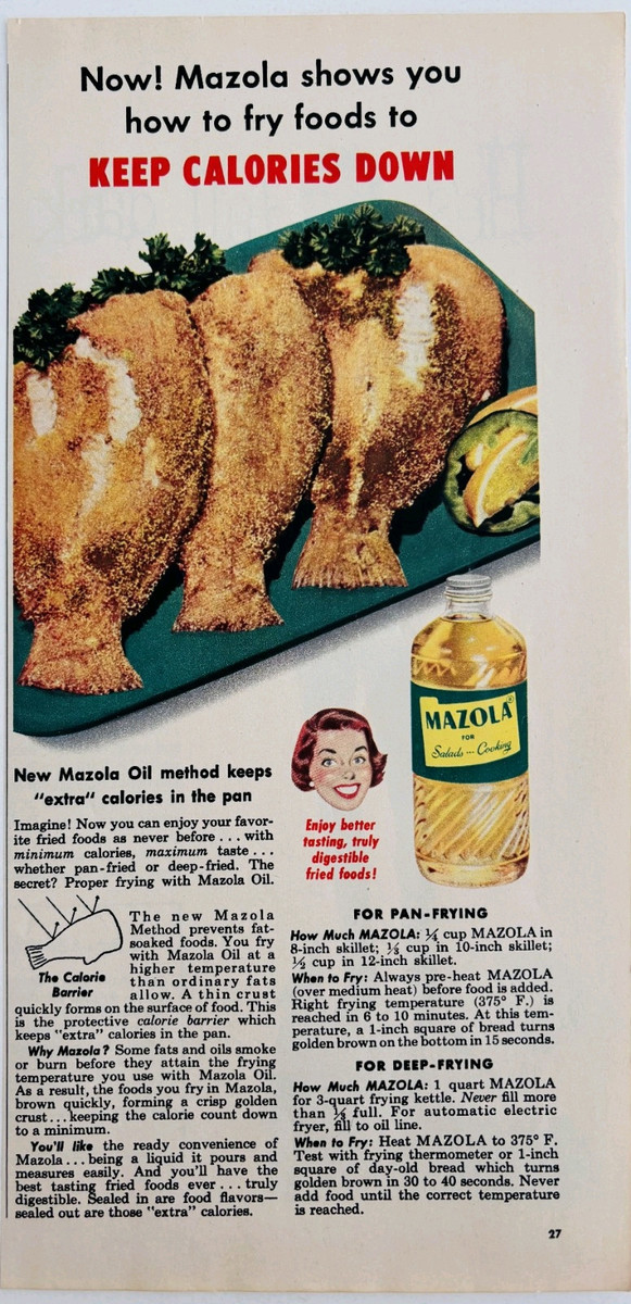 1954 Mazola Corn Frying Pan Oil Advertisement Cooking Baking Dressing DWQQ9