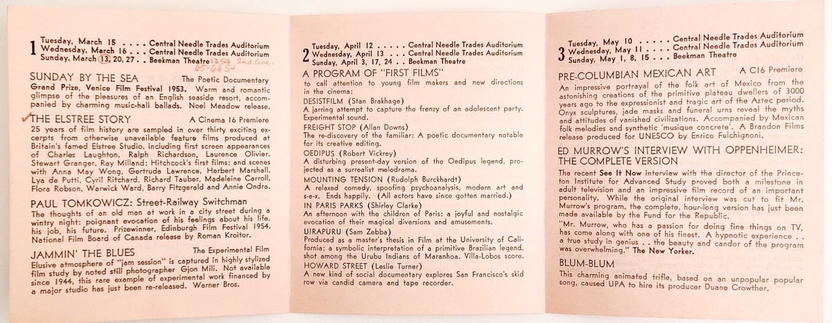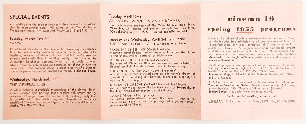 1955 Cinema 16 Spring Season Schedule and 34 similar items