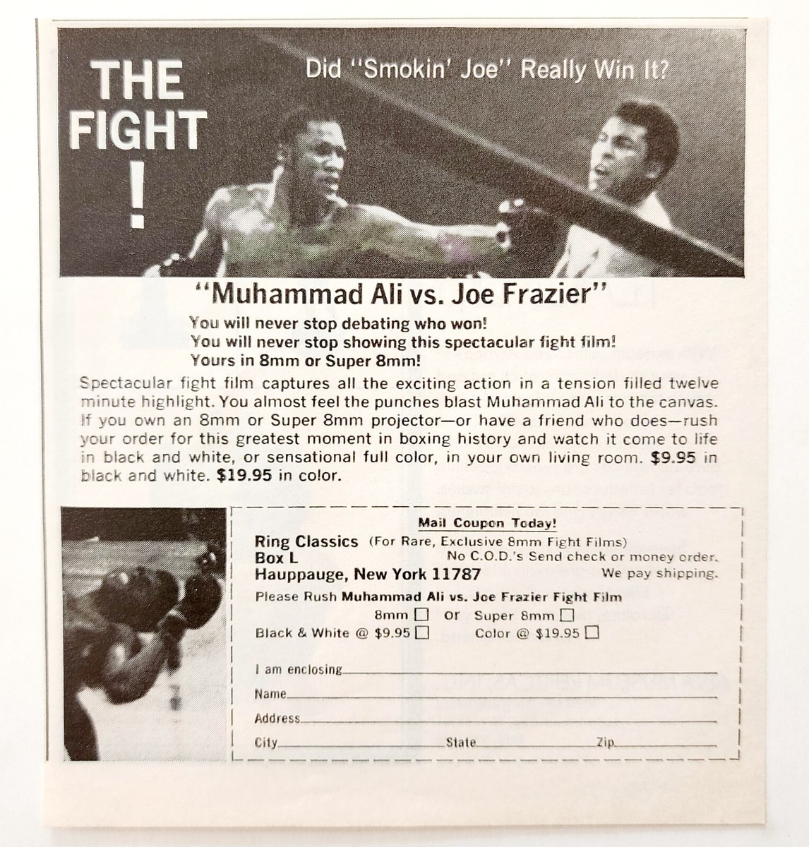 1971 Ali Vs Frazier 8mm Film Print Advertisement Boxing Ring Classics DWF11