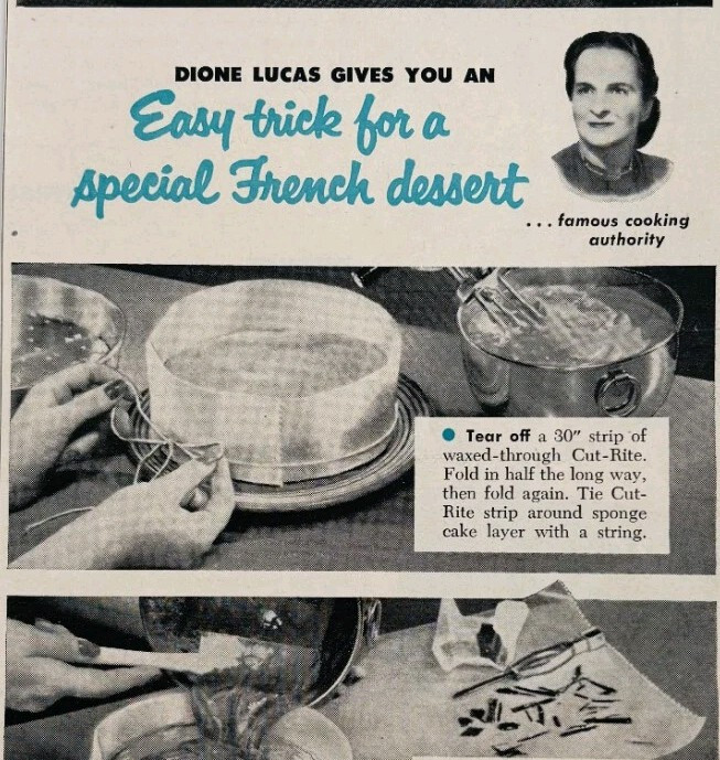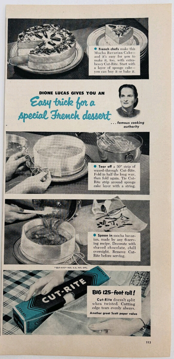 1954 Cut Rite Wax Paper Advertisement Baking Dione Lucas Famous Chef DWQQ9