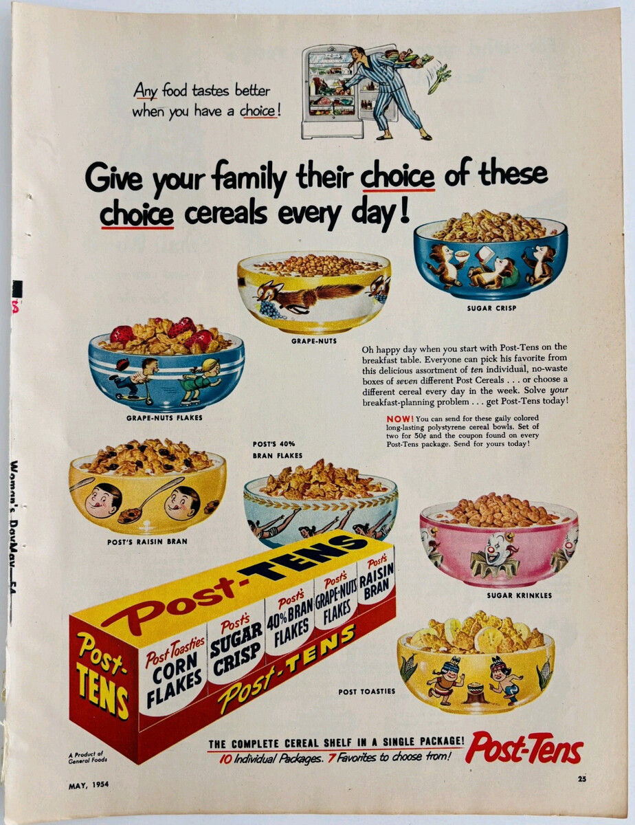 1954 Post Cereal Ten Pack Variety Advertisement Breakfast Foods Post-Tens DWQQ9