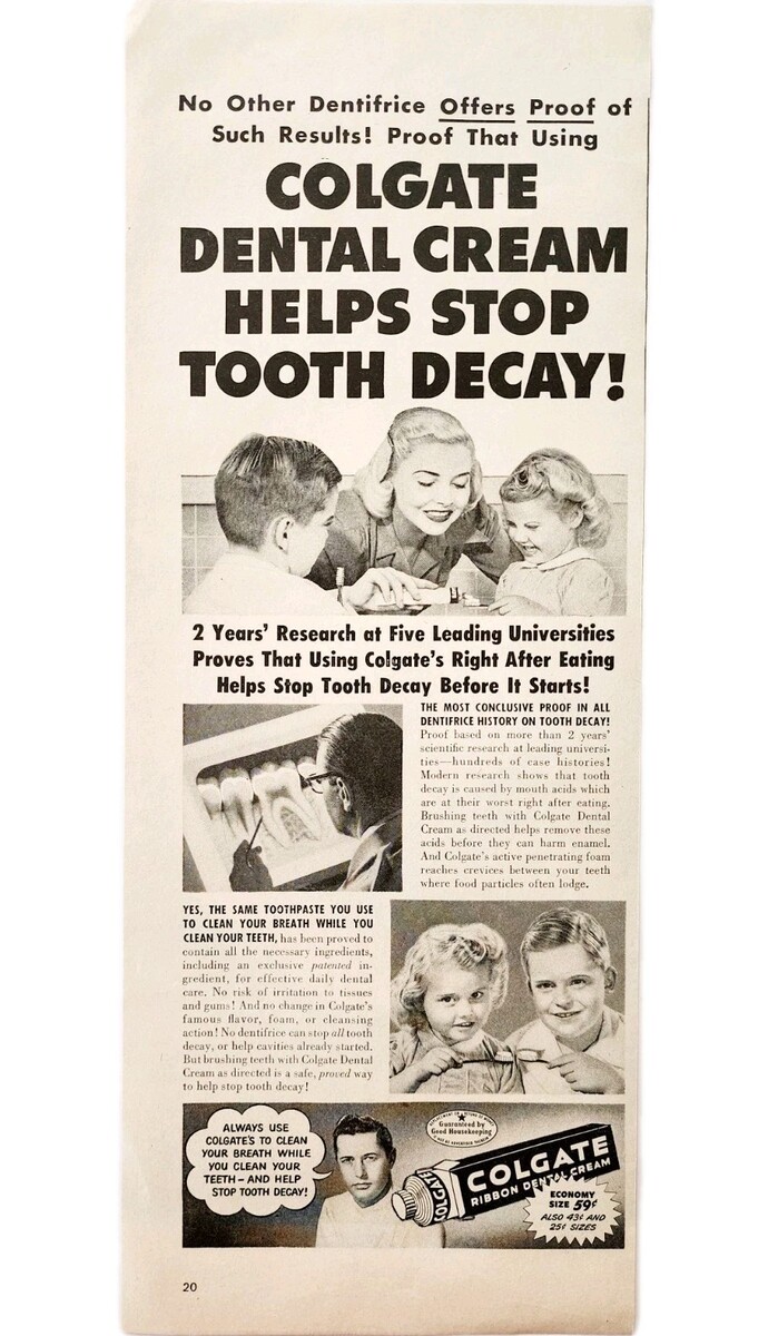 1950 Colgate Ribbon Cream Toothpaste Advertisement Dental Hygiene Vintage DWJJ9