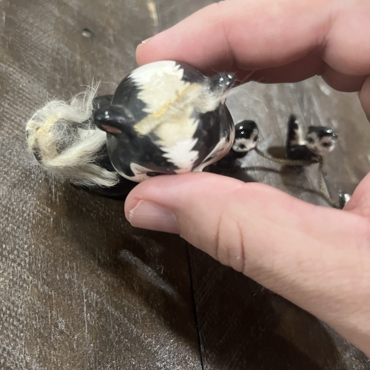 Vintage Skunk Family Figurines Mama Mother Chained Babies Fur Ceramic Kitschy