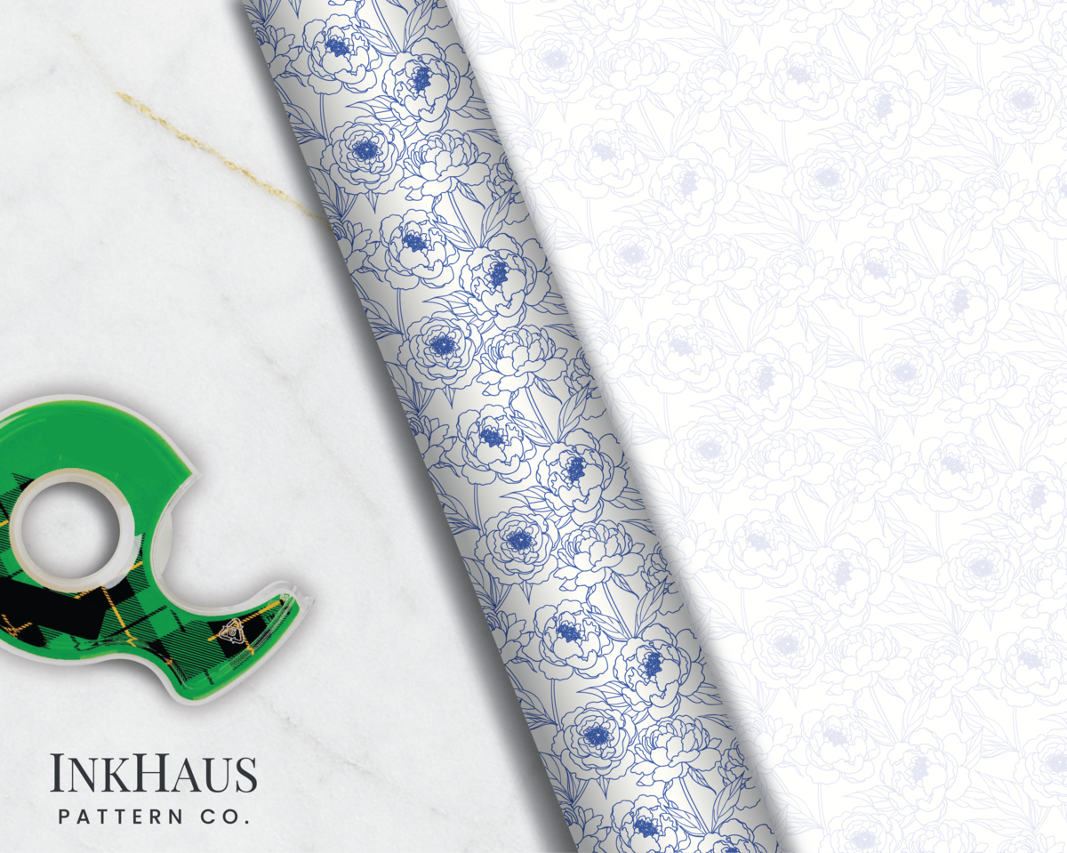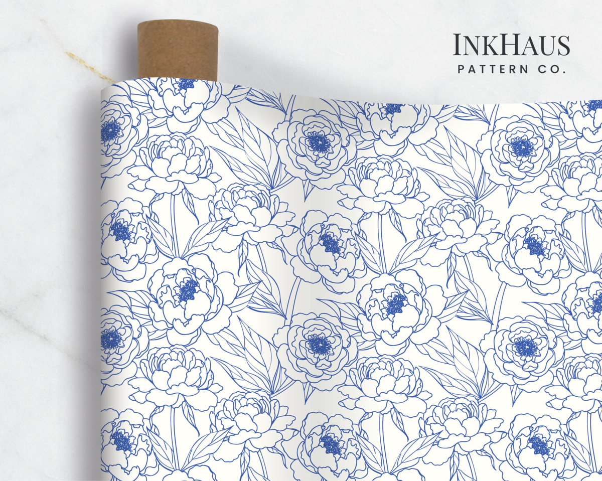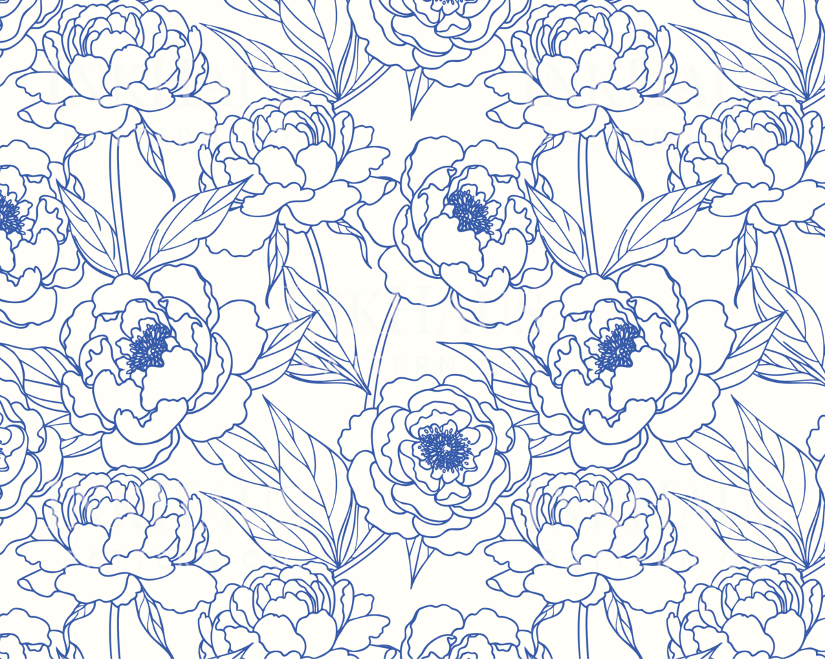 Peonies Seamless Pattern - White and Blue Flower Digital Download for Personal or Commercial Use