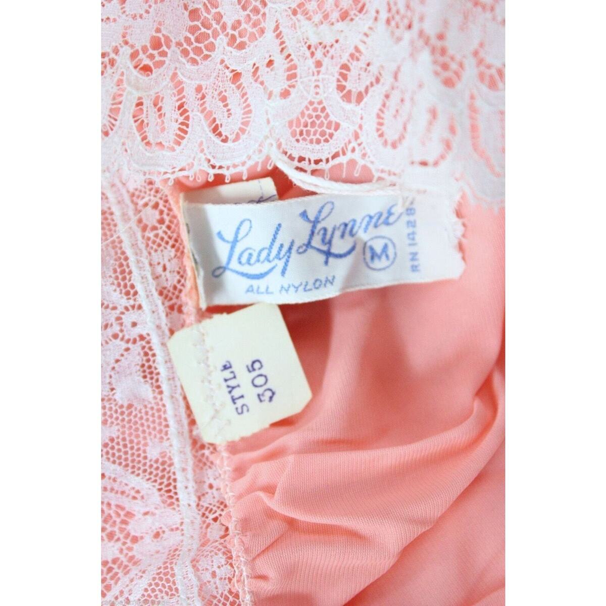 Vintage Retro Nylon Nightgown Coral Pink W/Lace Lady Lynne NOS 1950S M Unworn