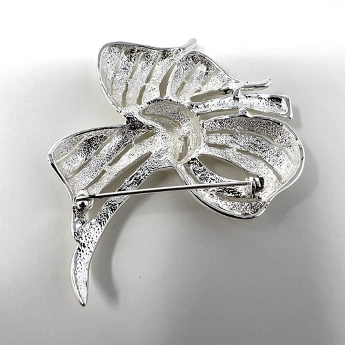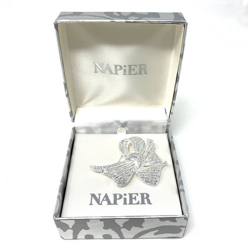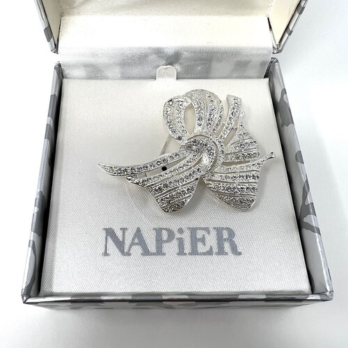 Vintage Napier Silver Tone Rhinestone Brooch Bow Ribbon Pin NOS In Original Box