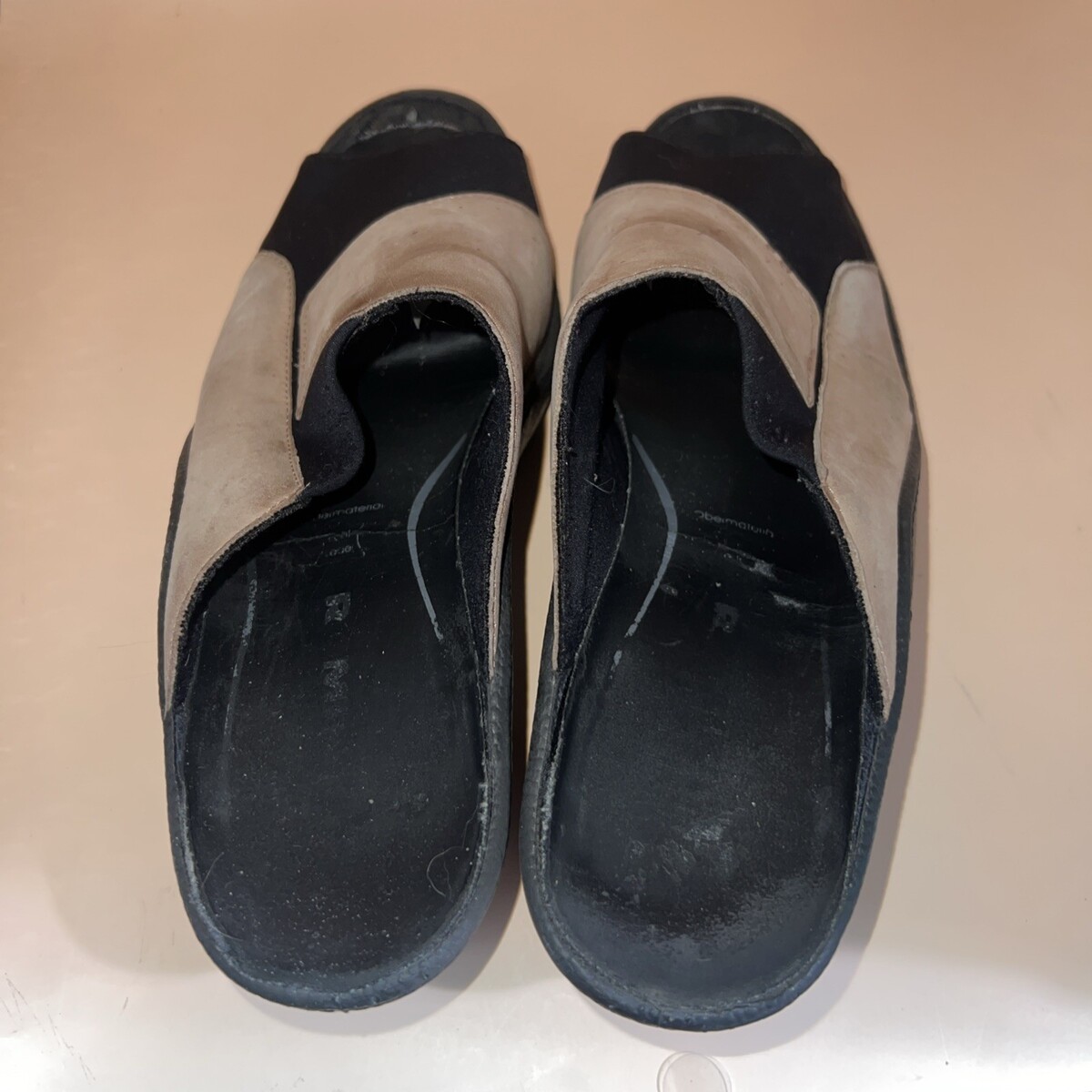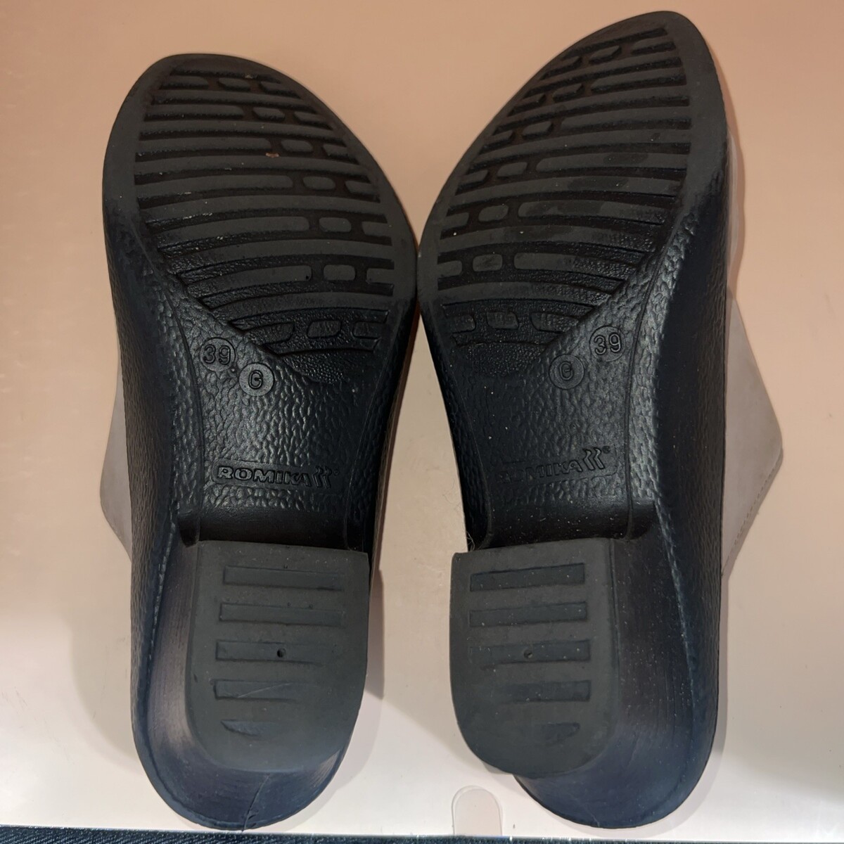 Romika Women’s Slide Sandals Black Tan Peep Toe Size 39 Slip-On Comfort Shoes