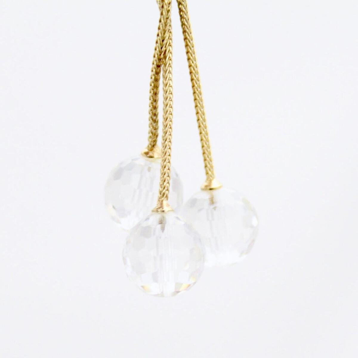Gorgeous vintage Ciner signed earrings feature a triple gold delicate mesh chain with a nearly 1/2" faceted crystal ball at the end of each one. They fall 1 1/2" from a gold-tone clip-back earring.