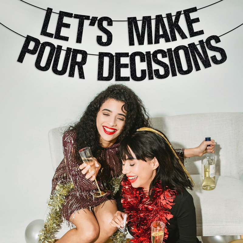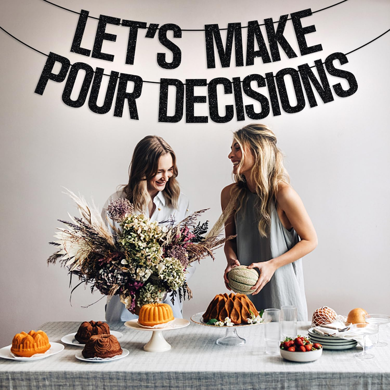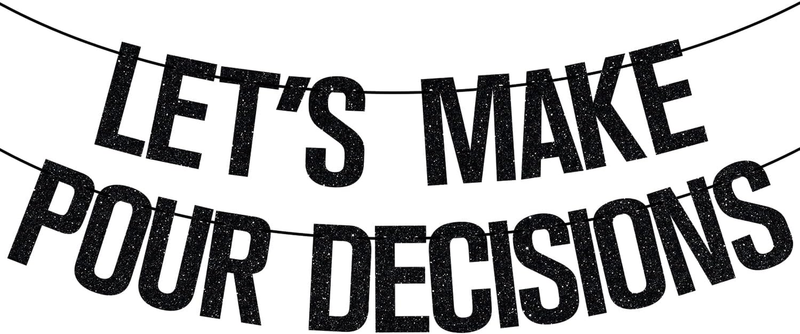 Let'S Make Pour Decision Banner, Girl'S Night, Wine Party Banner, Bachelorette Party Decorations, Bridal Shower Party Supply Black Glitter