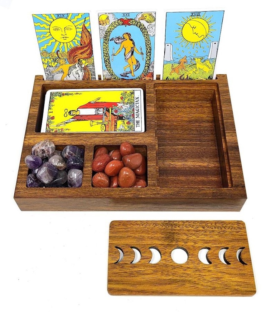 Wooden Tarot Card Holder and Storage with Moon Phase Lid!