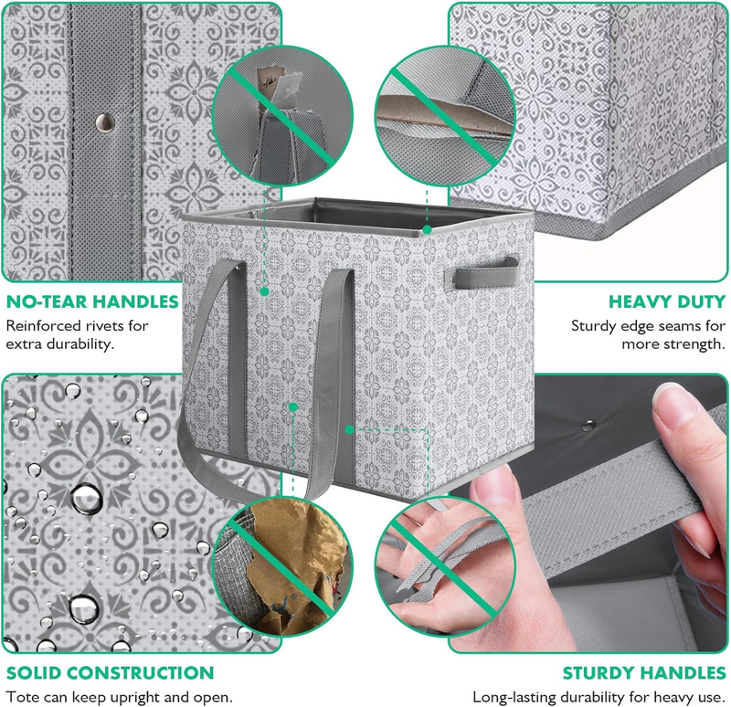 Multi-Purpose: To organize books/CDs or to carry and organize laundry,cleaning supplies,art supplies. Also works as a reusable grocery bags to hold groceries in the car and hold picnics and snacks for the beach or camping.