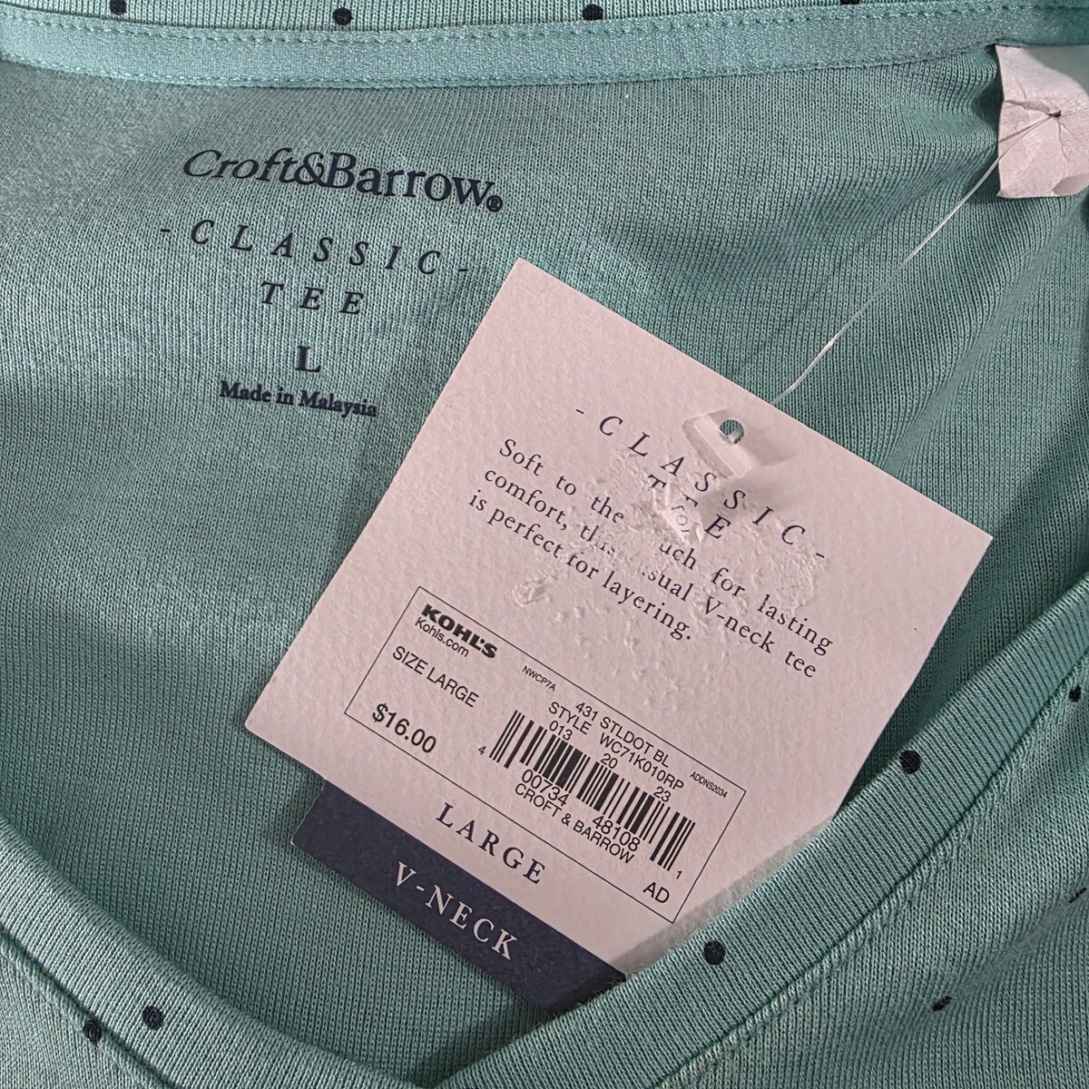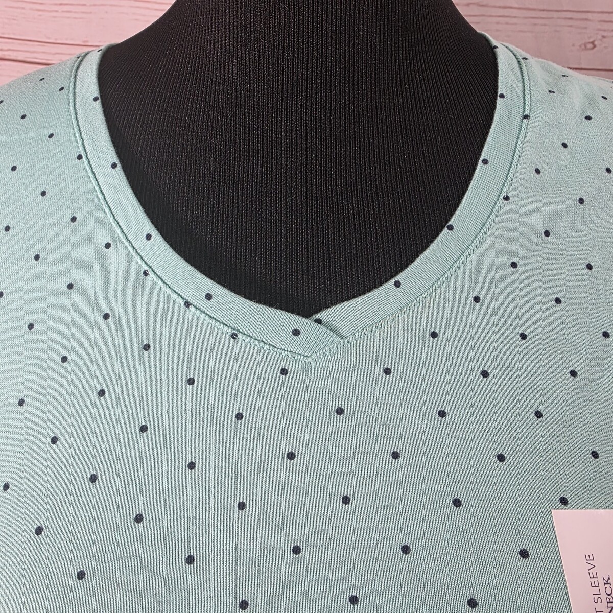 New with tag Croft Barrow short sleeve mint green and black polka dot vneck t-shirt size large.