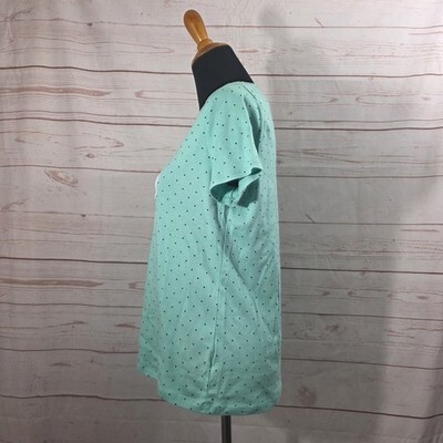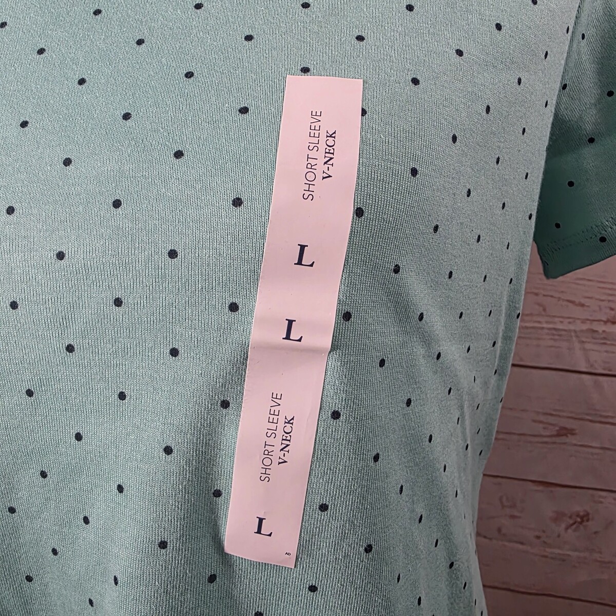 Croft & Barrow Short Sleeve Mint Green and Black Polka Dot Vneck Size L NWT