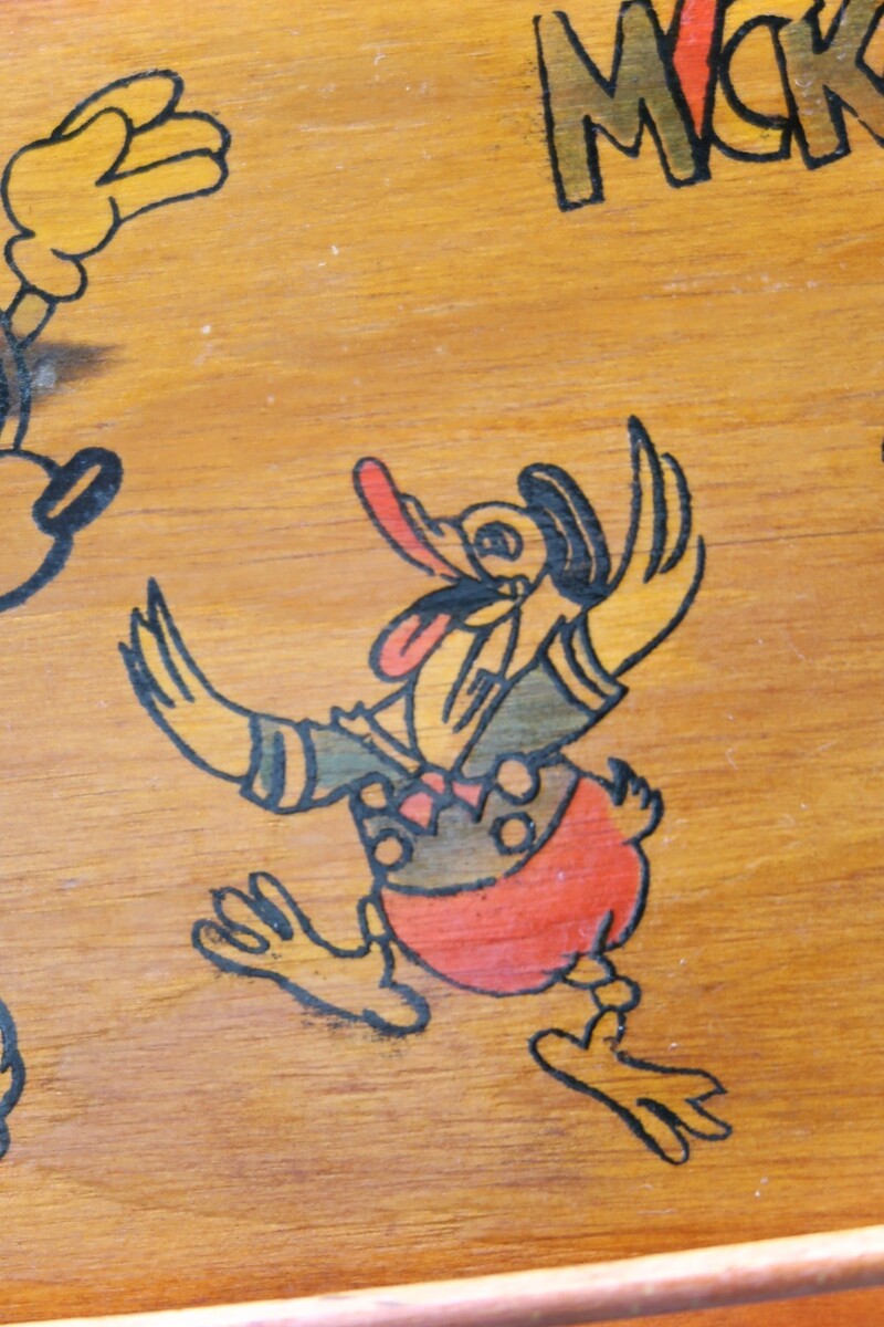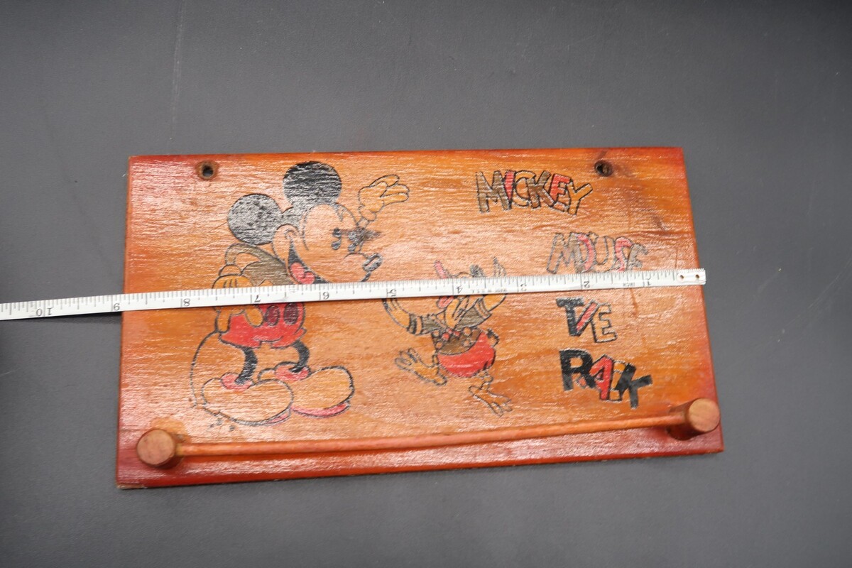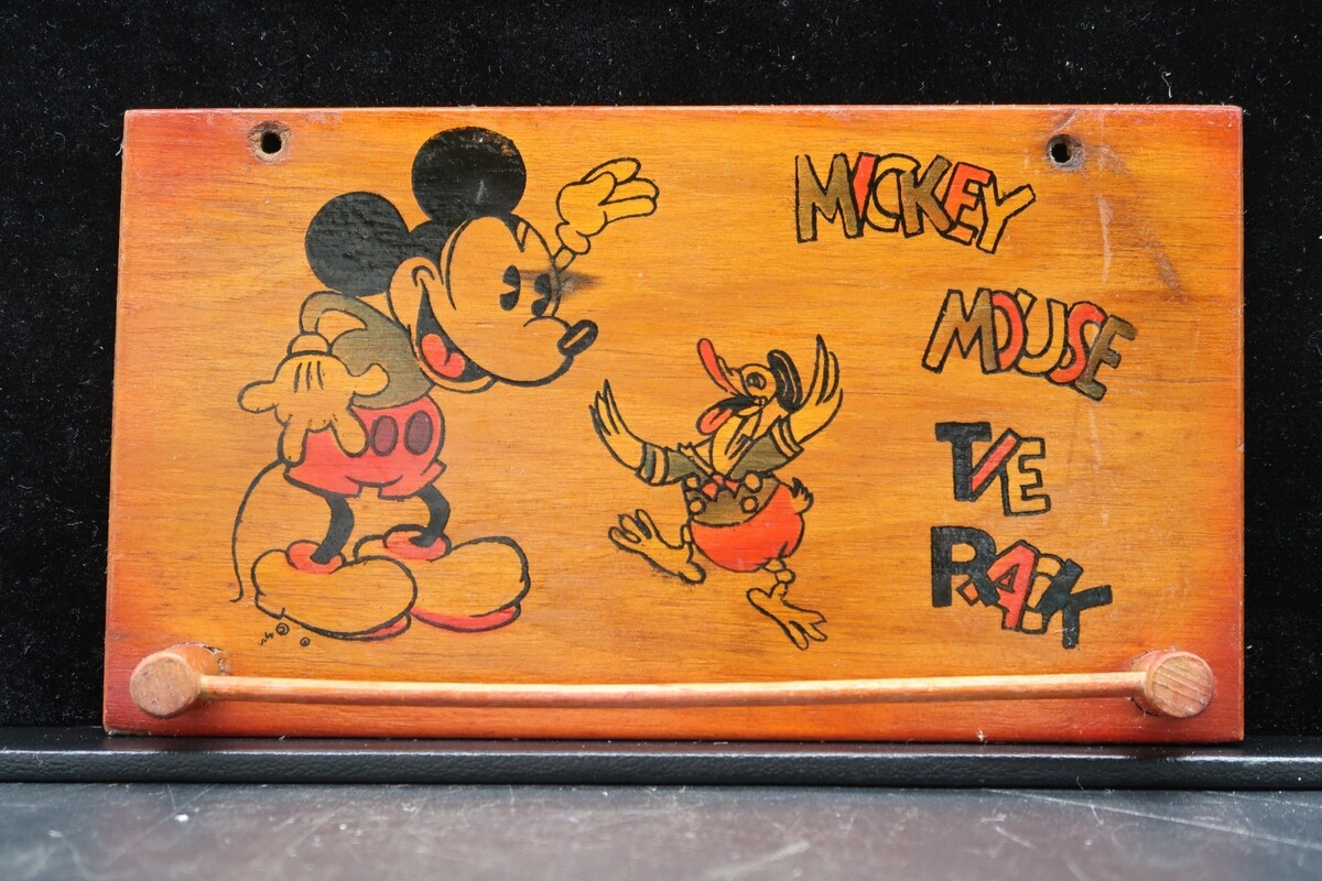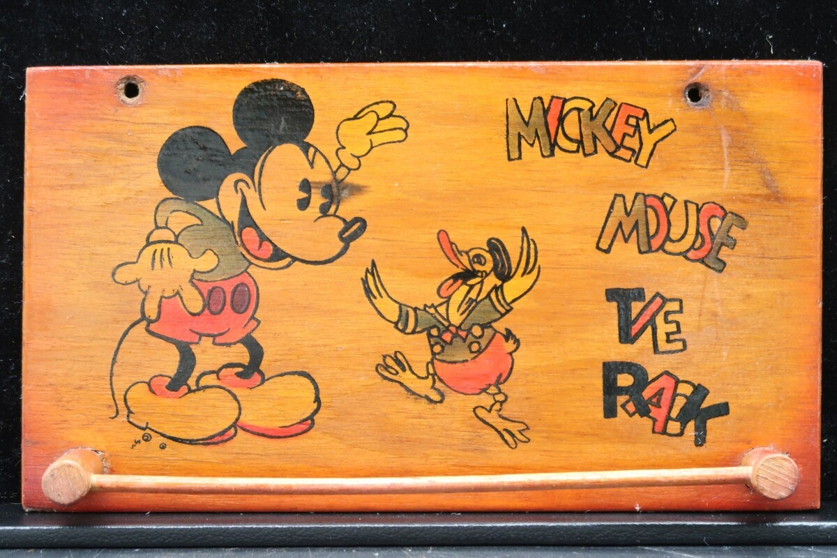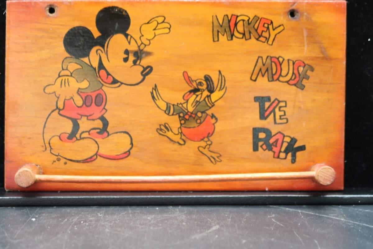 1930's Vtg Walt Disney Wooden Tie Rack MICKEY MOUSE & DONALD DUCK Graphics