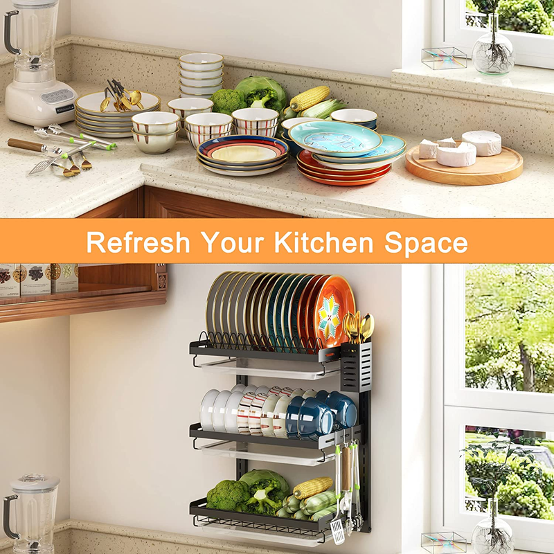 ?Quality Assured?Buy with confidence, we are committed to providing quality products. 24h/7days friendly customer service and satisfy solution if any quality problem with this kitchen 3-tier wall mounted dish drainer rack