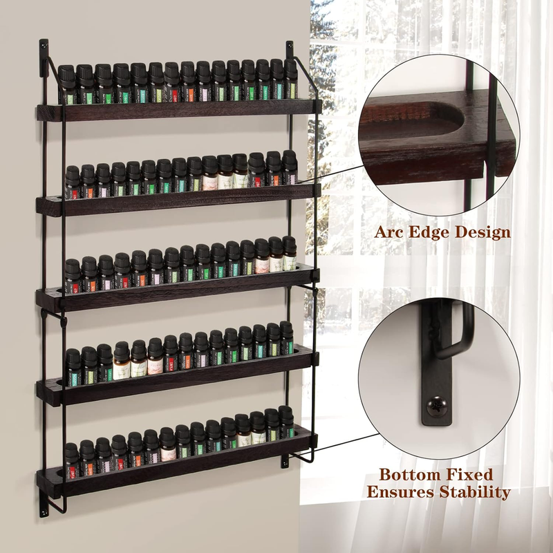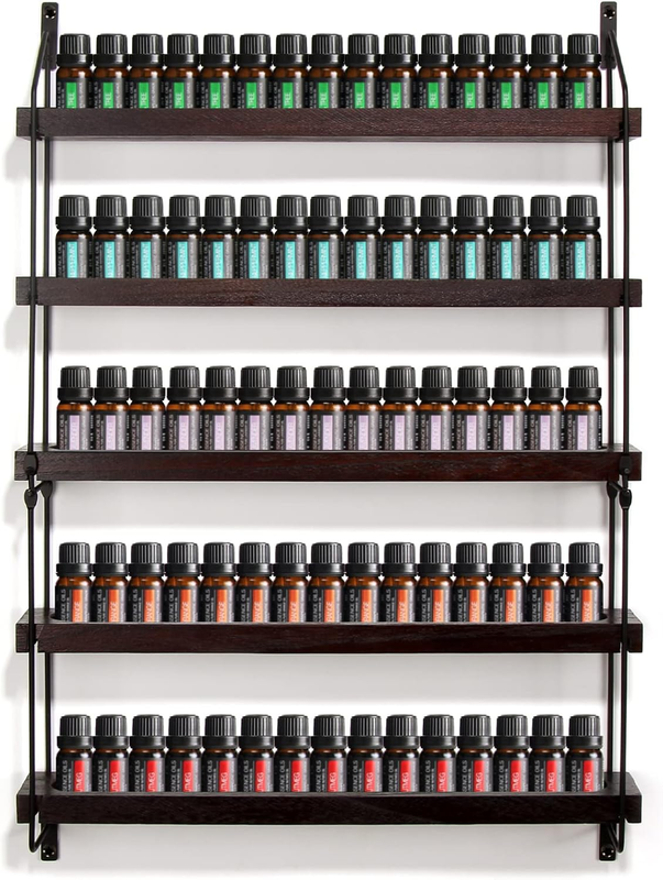 Space-Saving Essential Oil Storage: This 5-tier wall essential oil holder keeps your essential oils organized for quick and easy access, keeps your desktop neat, and doesn't take up drawer or cabinet space. You can arrange your essential oils by brand, by alphabet, or according to a system of your choice