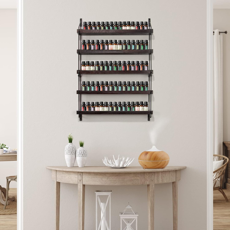 Lovely Display Rustic Decor: Designed with premium vintage wood and a unique metal frame, this rustic wooden essential oil shelf displays your adored essential oils collection with a natural feel. Mount it anywhere you want to display your oils and it will become an eye-catching decoration in the space