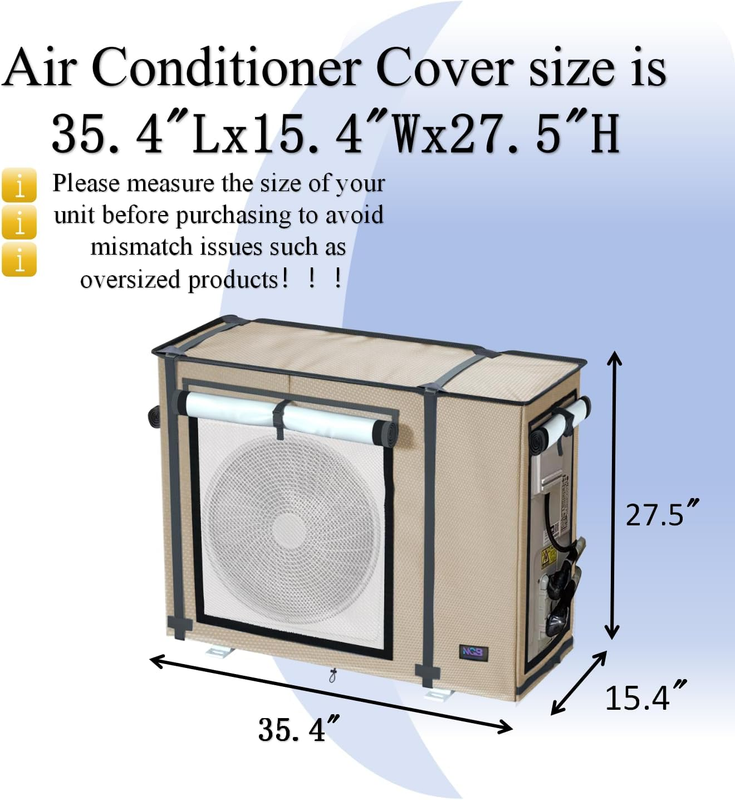 WARM TIPS: Mini Split air conditioner cover for split air conditioner measures 35.4"Lx15.4"Wx27.5"H, suitable for Senville24000, Cooper Hunter24000, DELLA24000, ROVSUN24000, Mrcool18000, Pioneer24000BTU,etc Mini Split air conditioner.Please check if our air conditioner cover fits the size of your mini split air conditioning unit before purchase!