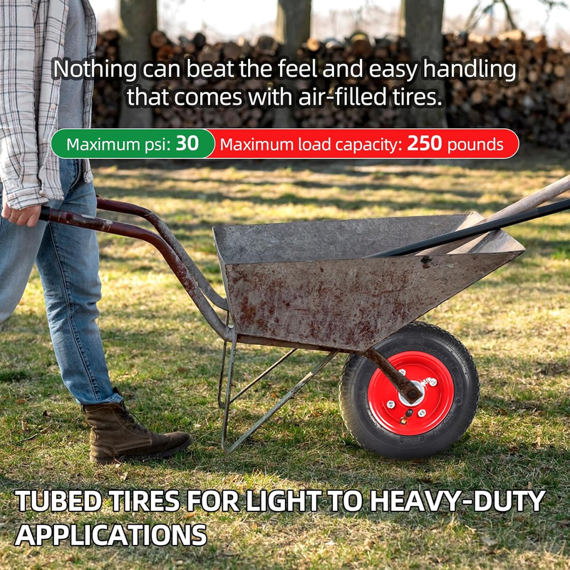 They also need to last as long or even longer than the original. This replacement tire and wheelset for utility are made from high-quality materials including solid steel rims, 100% rubber tire, inner tubes, deep-treaded tires, and thick, explosion-proof inner tubes. Explosion-Proof Inner Tubes for Your Safety Haul heavy cargo on rocky or steep terrain without the fear of explosive punctures.