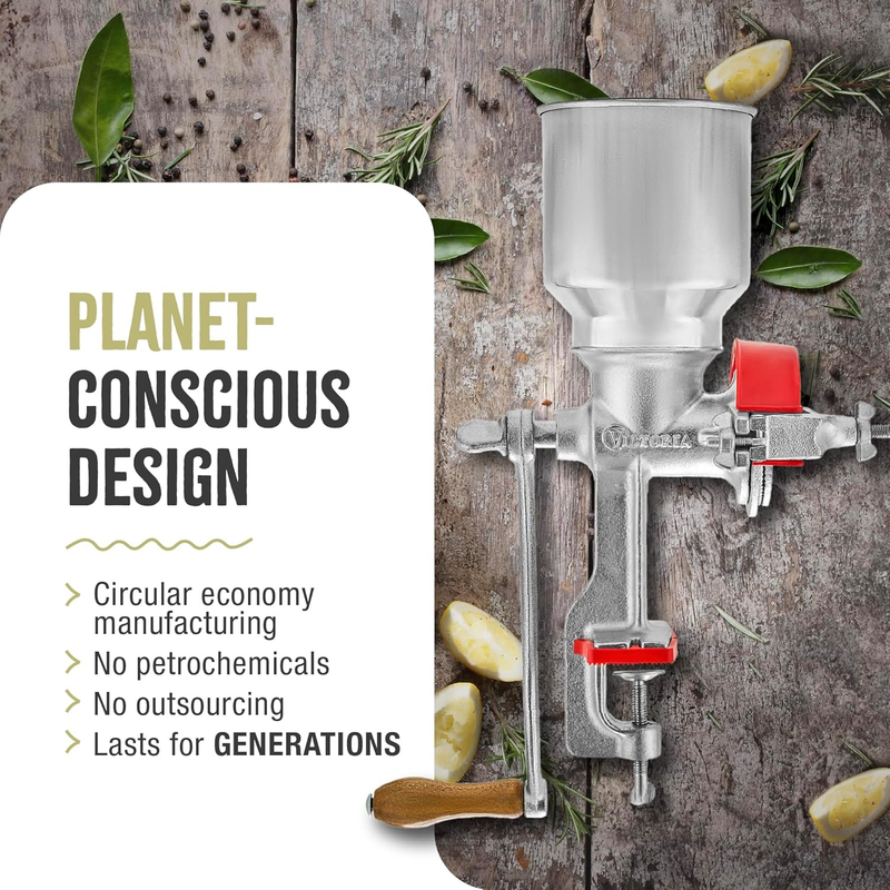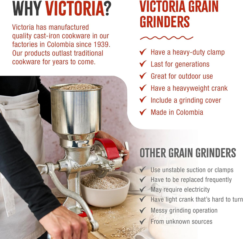 PREMIUM CAST IRON GRINDER: Known as a ?molino para moler maiz,? our cast iron mill makes grinding easy and efficient. It has heavy-duty cast iron construction with double tin plating, a grinding cover, erosion-resistant discs, and an adjustable screw.