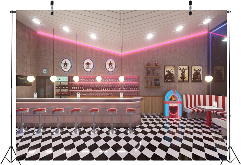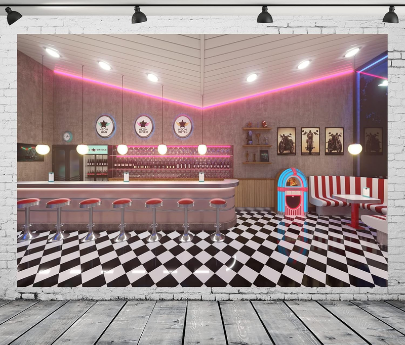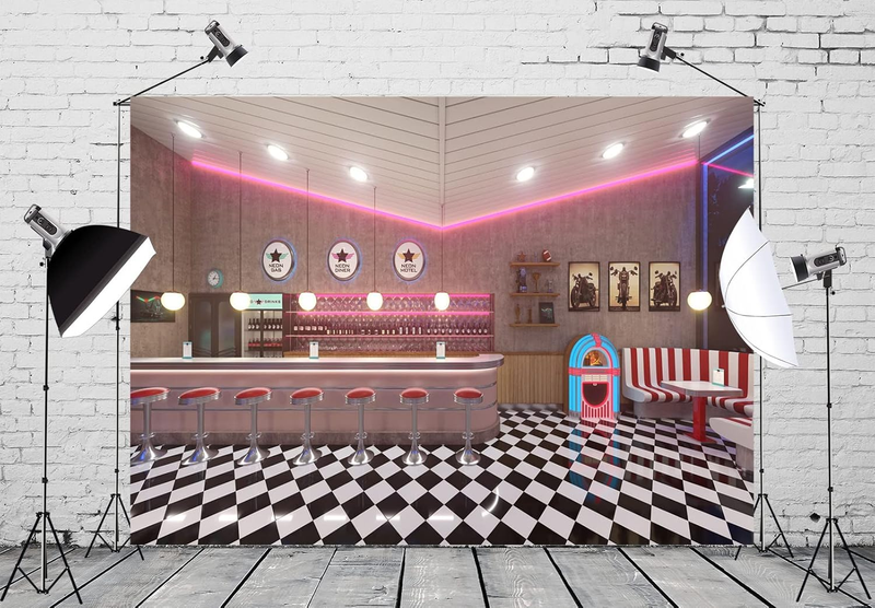 7X5Ft Fabric Retro 50S Diner Backdrop for Photography Classic 1950S Fast