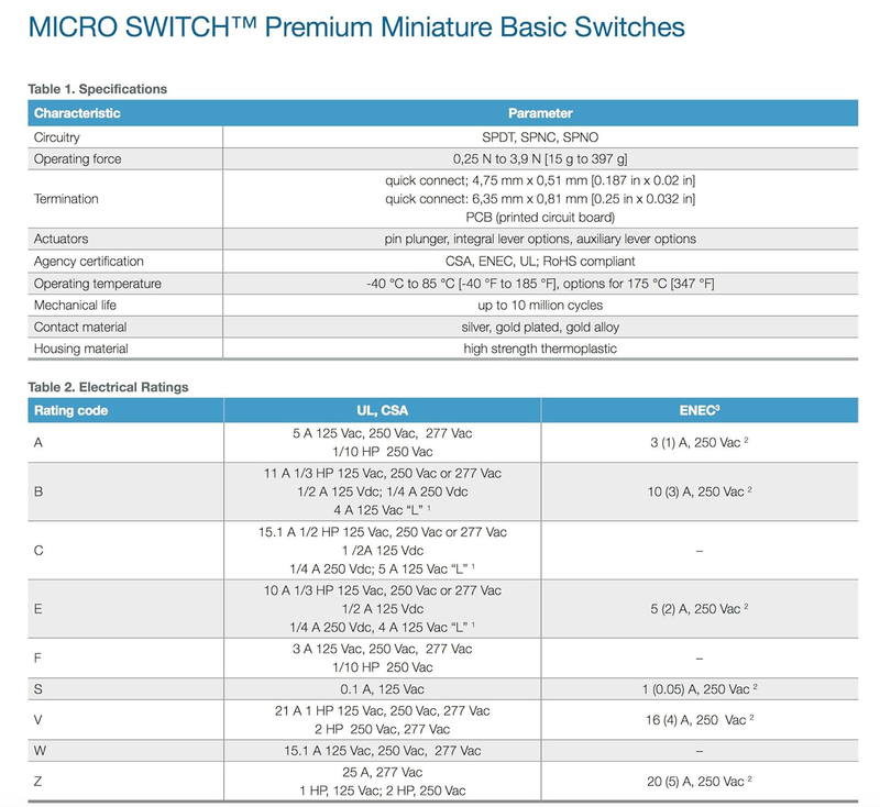 Micro Switch Premium Basic / Snap Action Switch 25A @ 250VAC V7-1Z29E